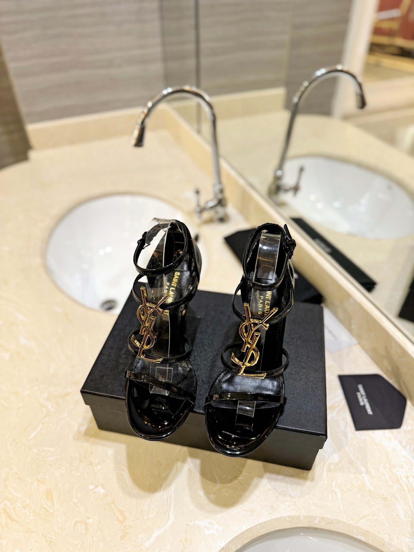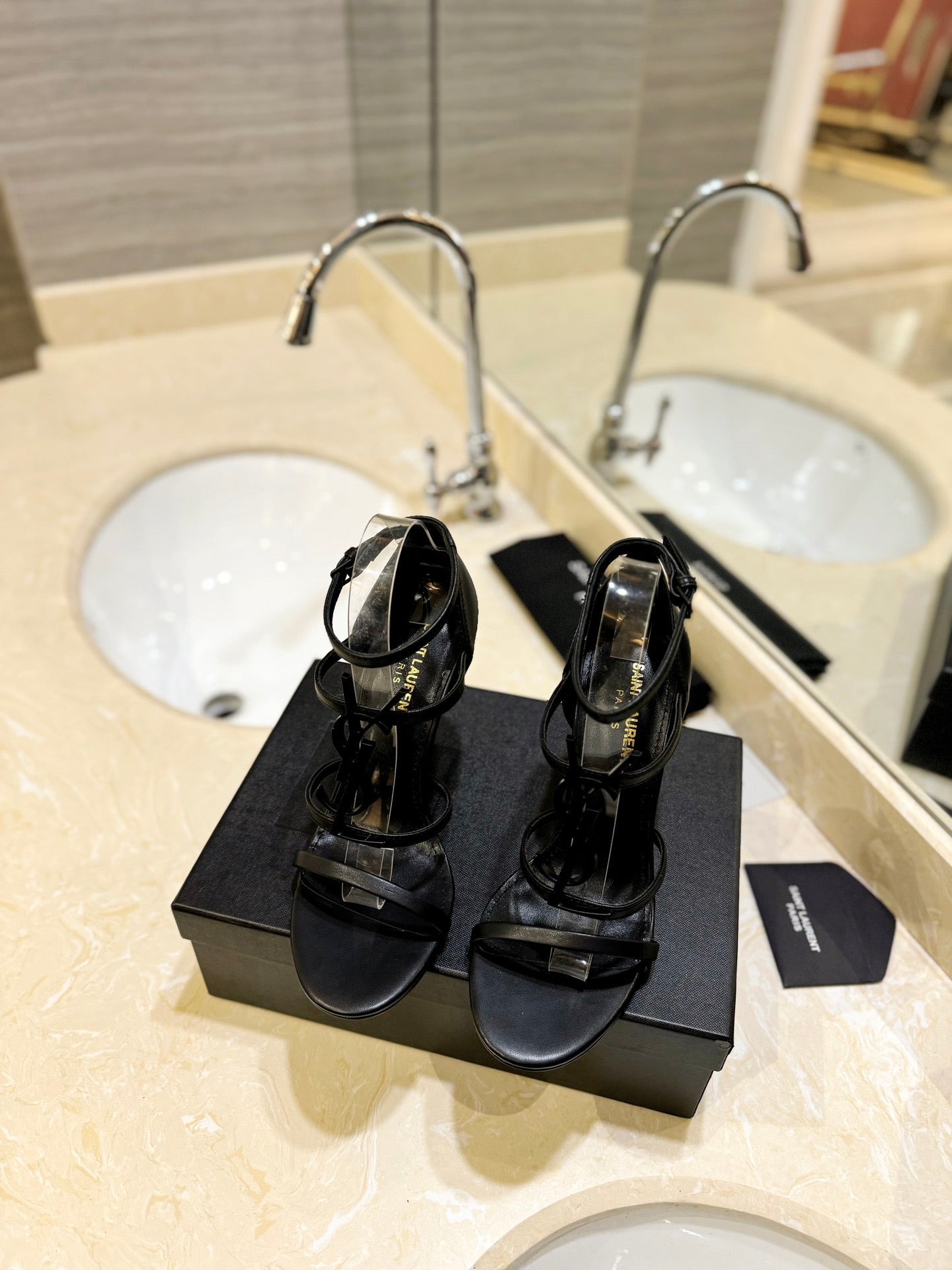 SL CASSANDRA HEELED SANDALS BLACK POLISHED CALFSKIN