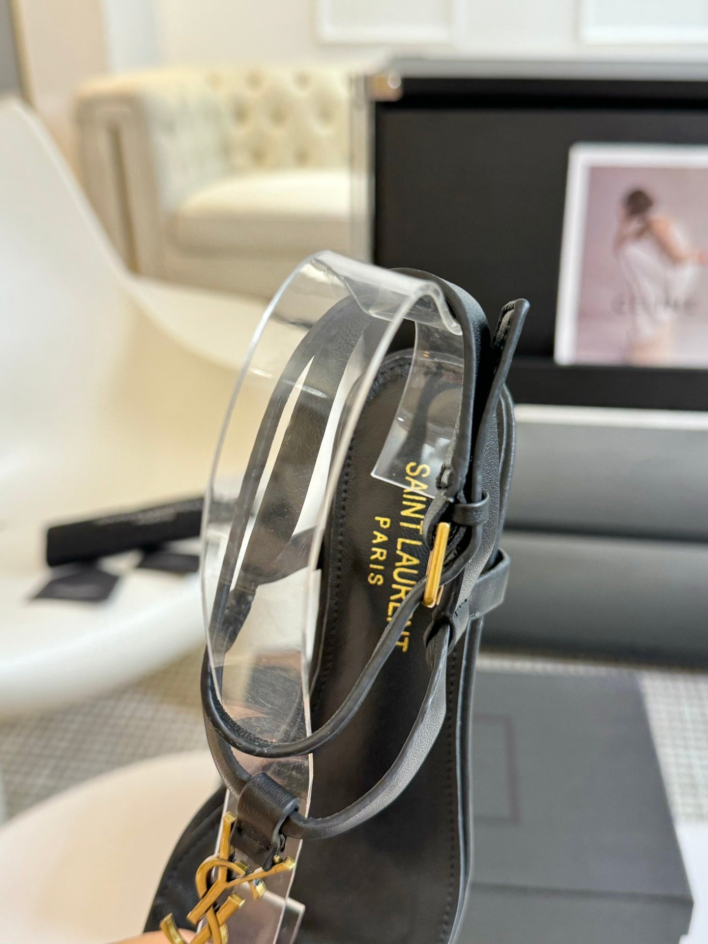 SL CASSANDRA FLAT SANDALS BLACK CALFSKIN