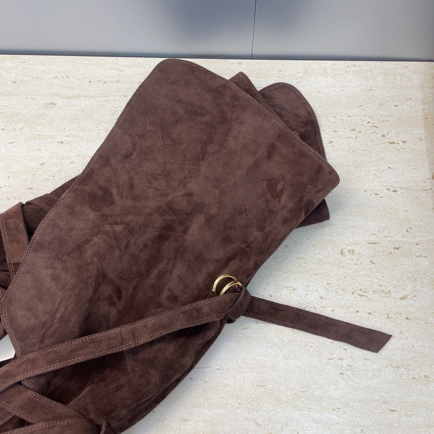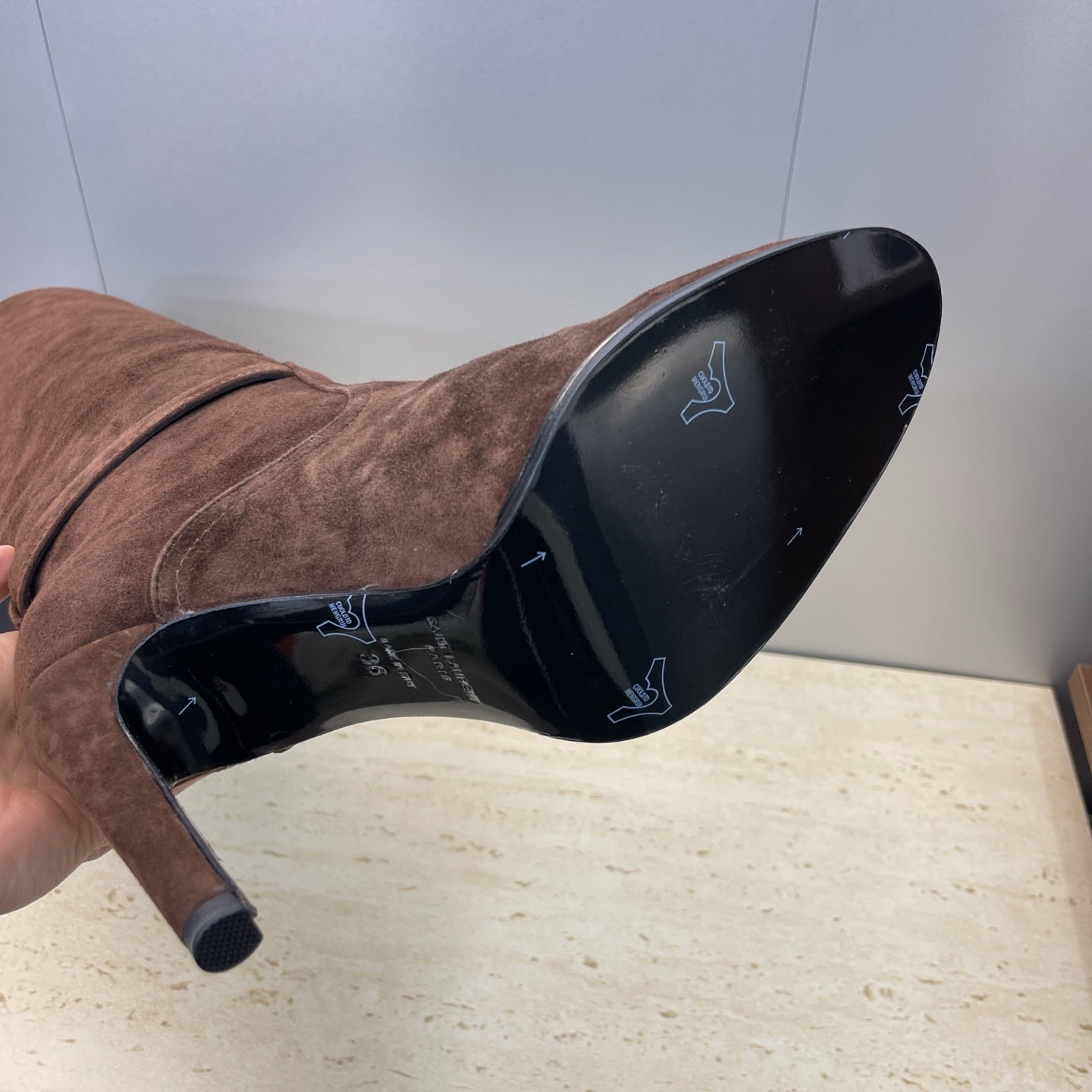 YSL 2025 High-Heeled Pointed-Toe Knee-High Rider Boot Brown Suede 574020