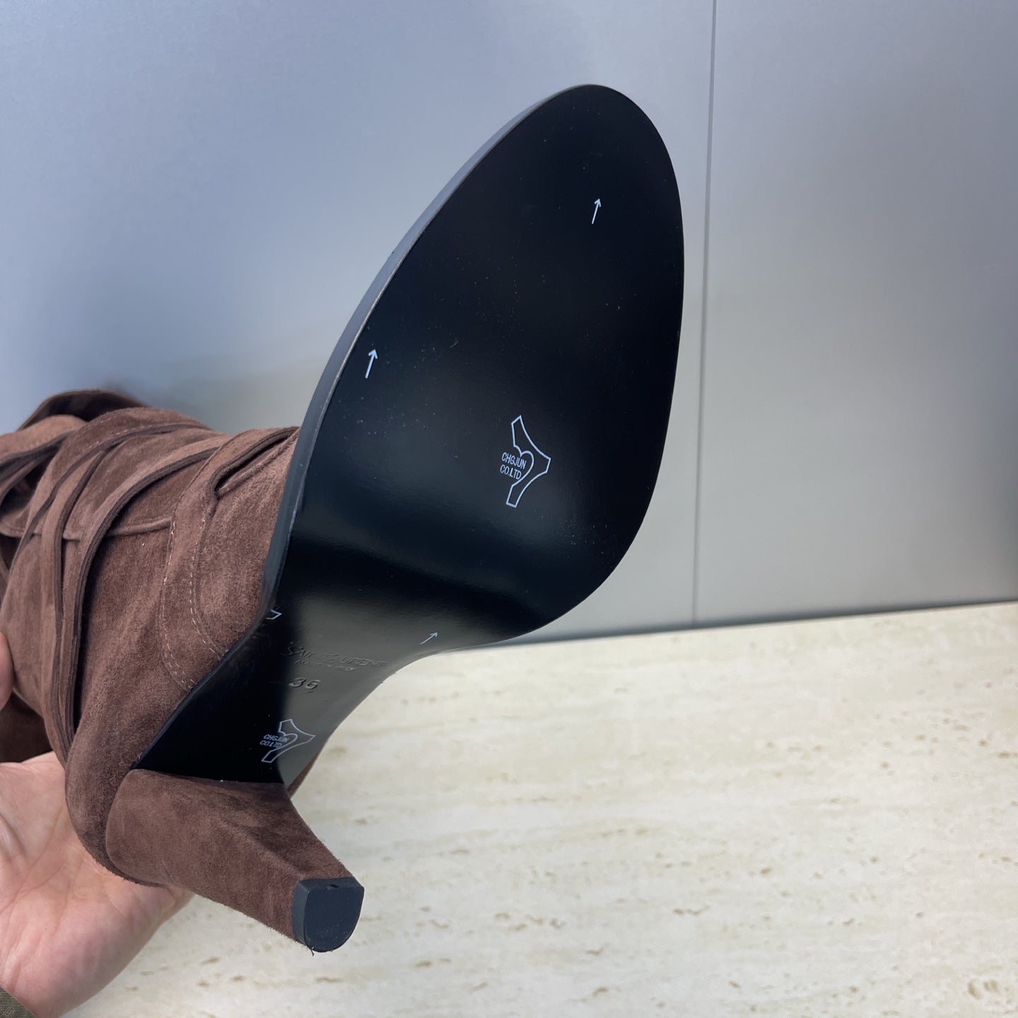 YSL 2025 Knee-High Boot Brown Calfskin 574006