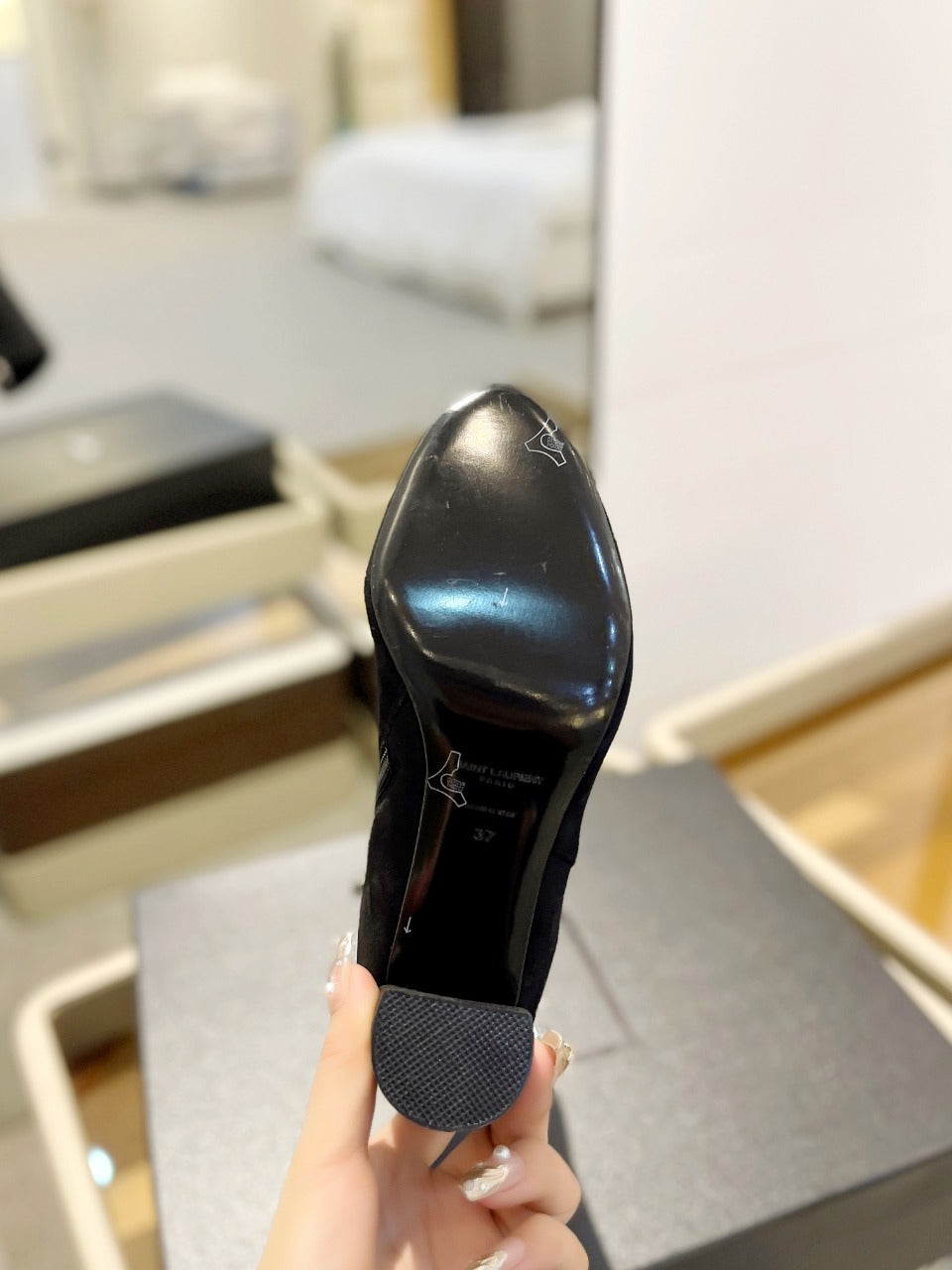 YSL 2025 High-heeled Ankle Boot Black Suede 574076