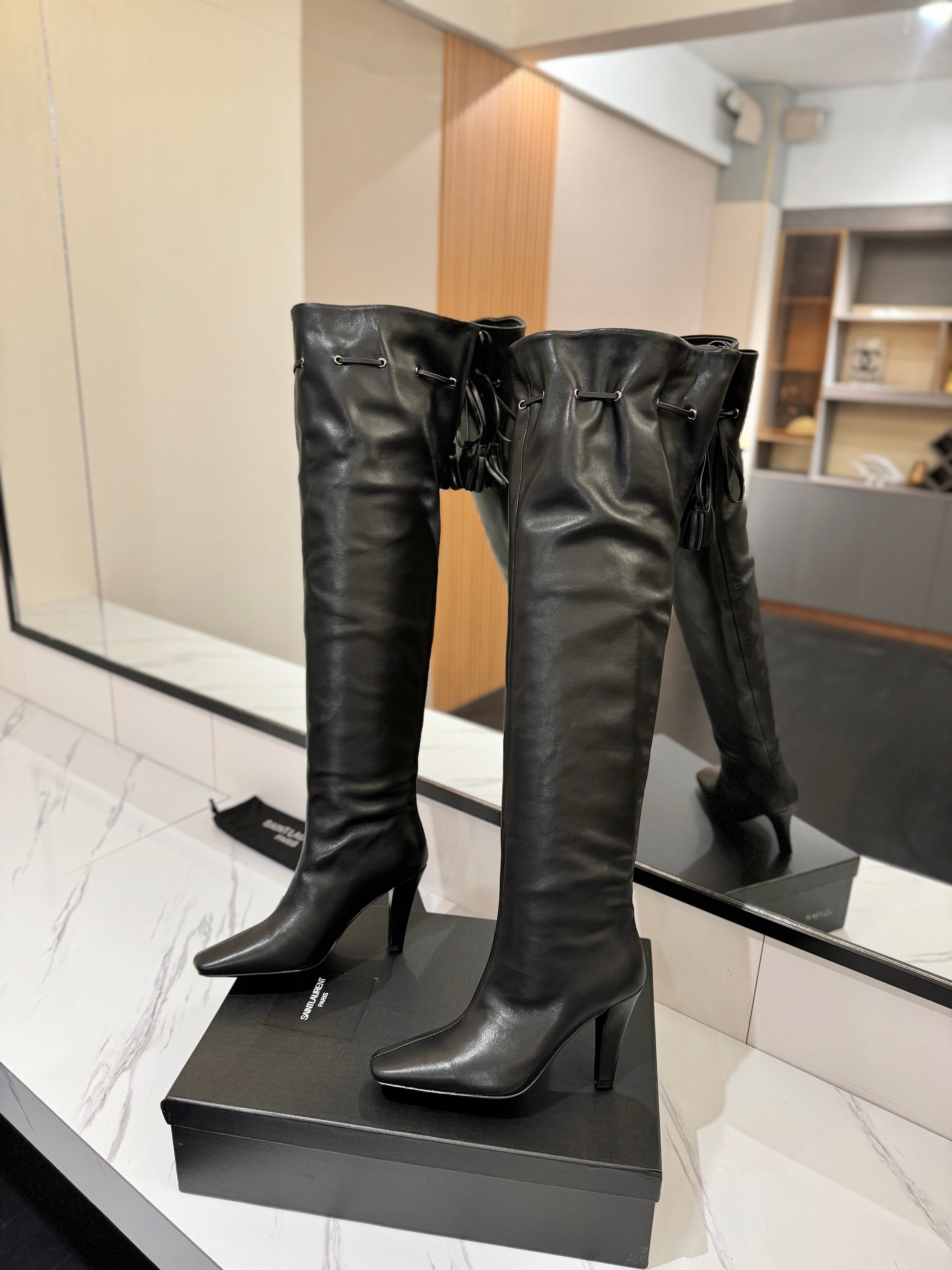 YSL 25 Long Boot Black Cowhide 522268
