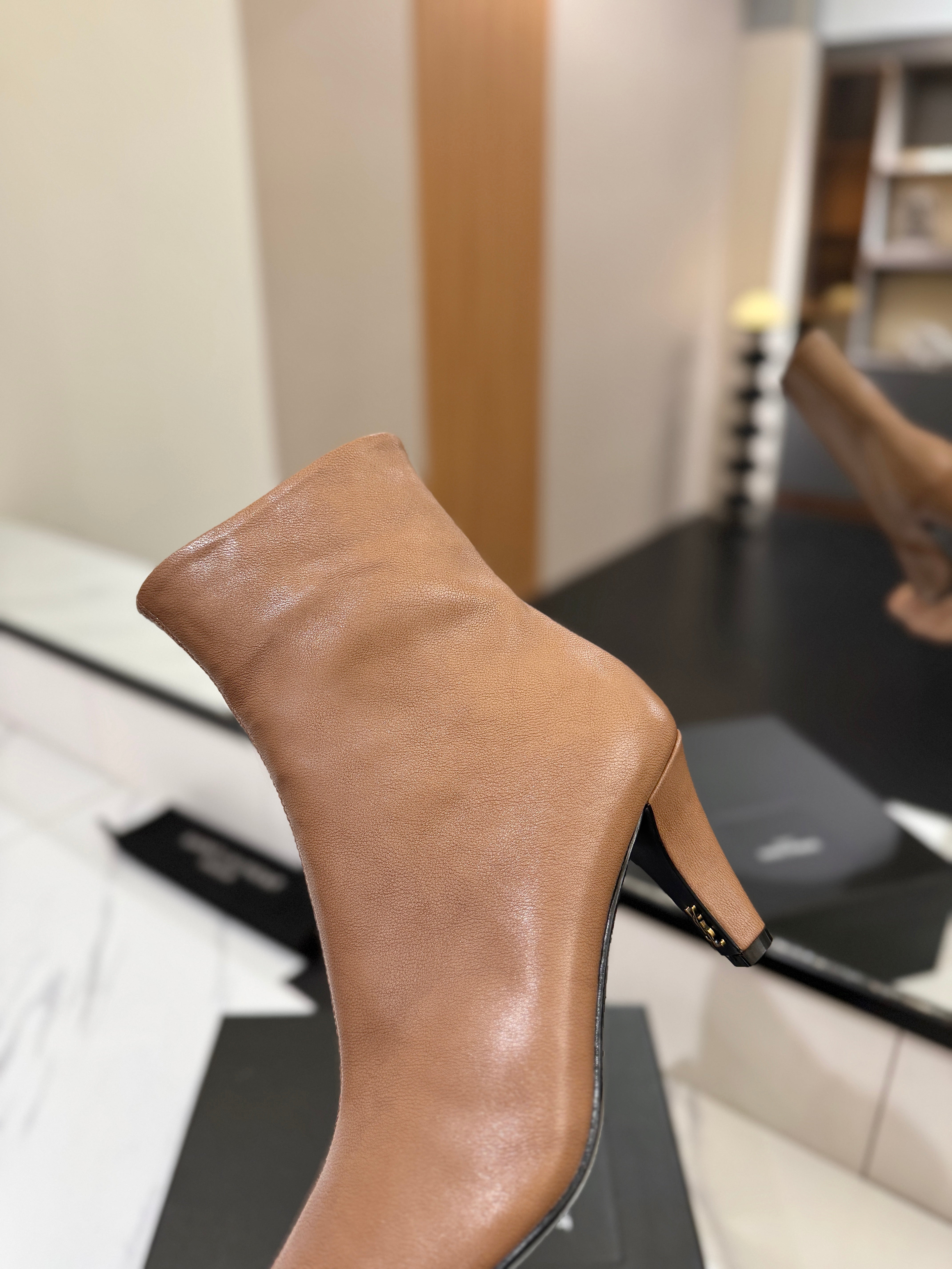 YSL 25 High-heeled Boot Light Brown Cowhide 520774
