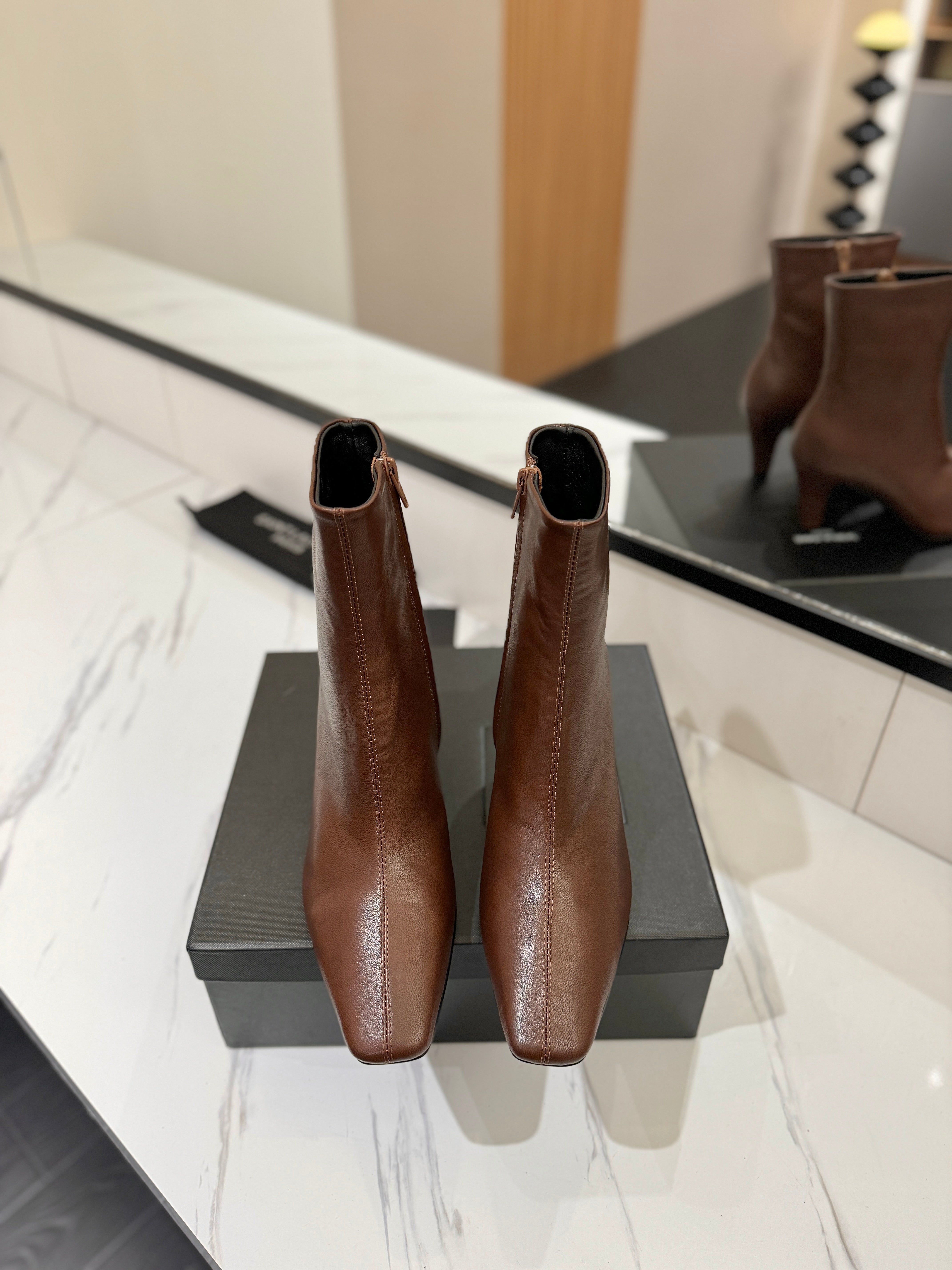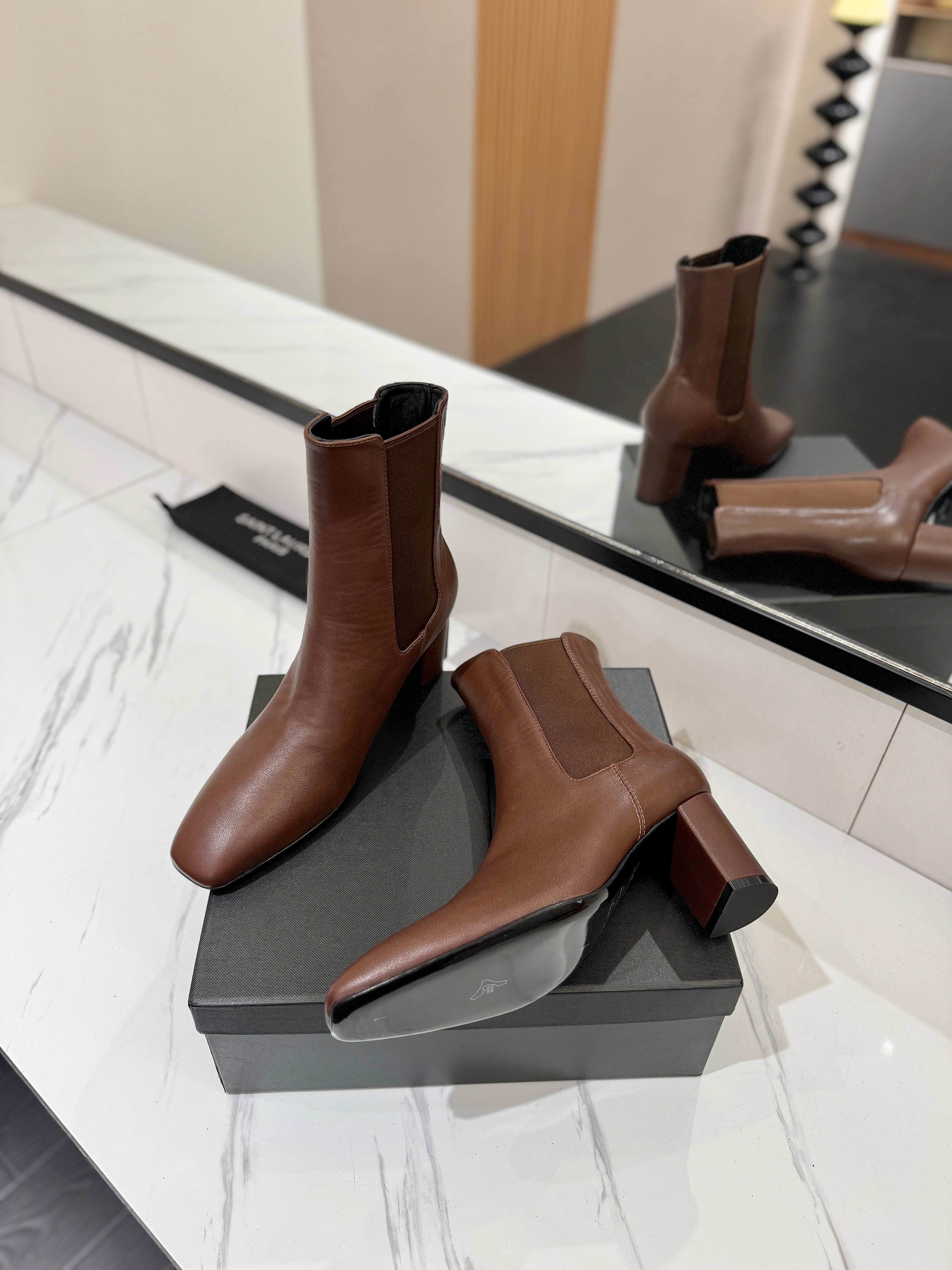 YSL 2025 Short Boot Brown Calfskin 575015
