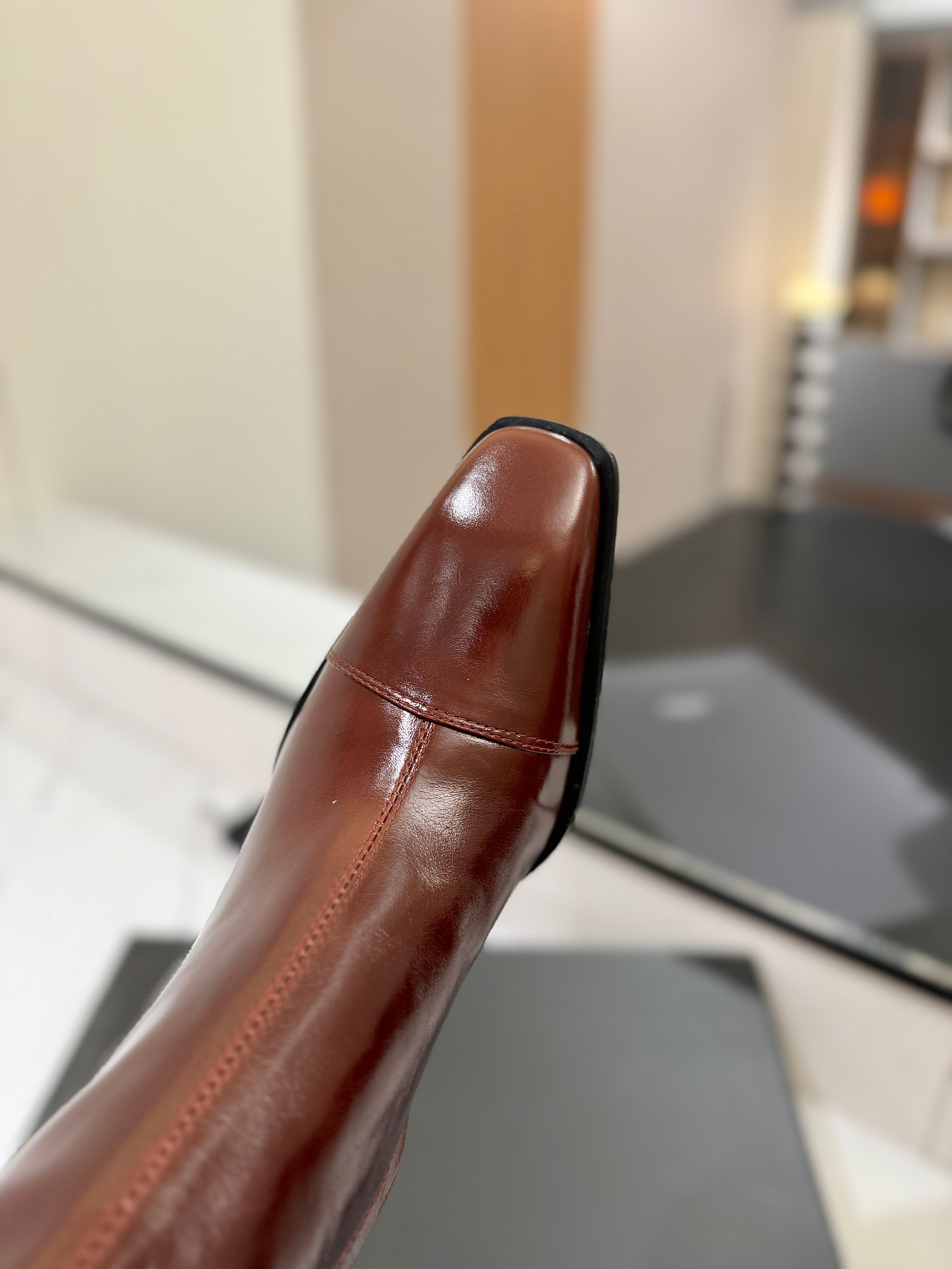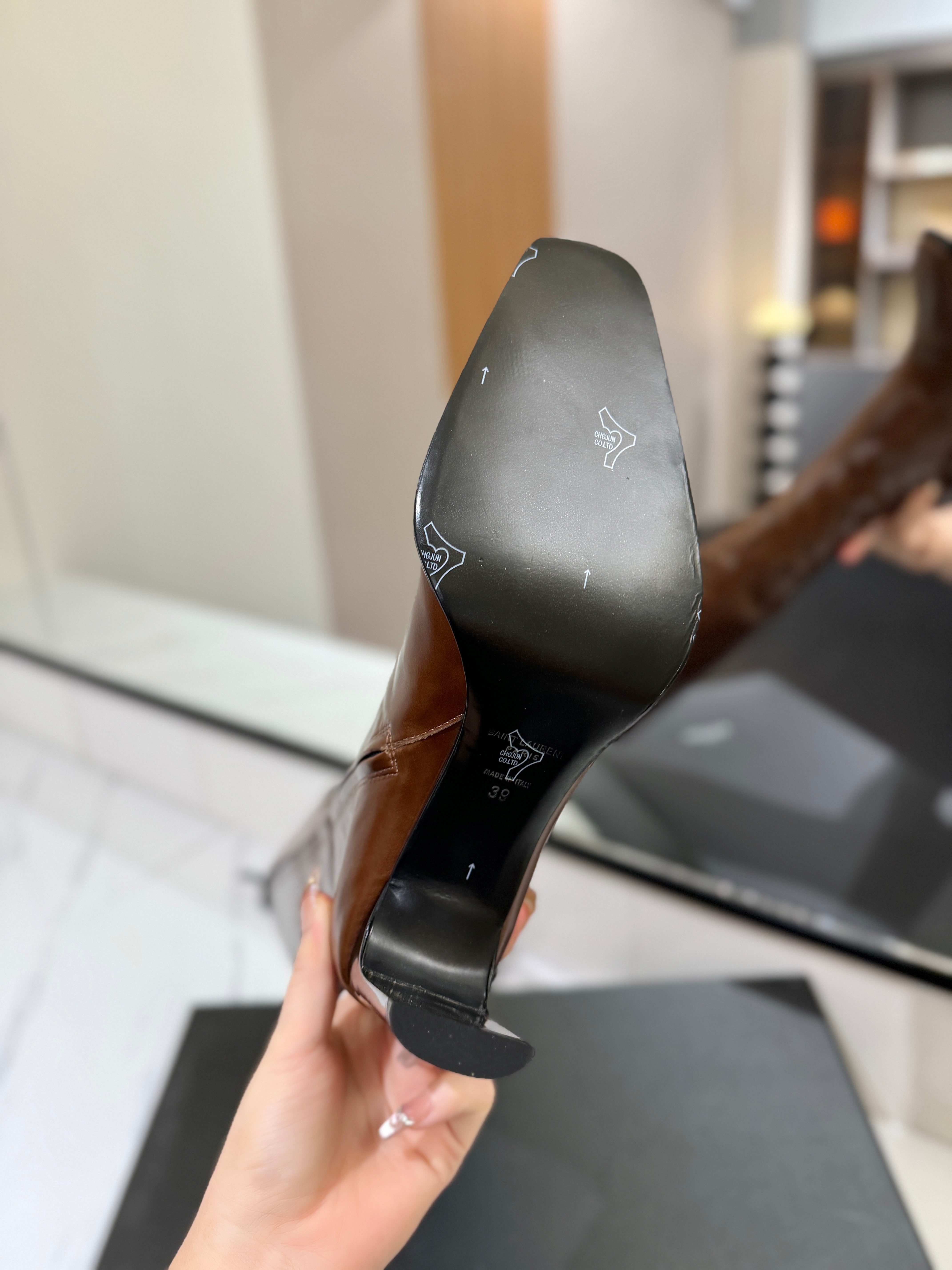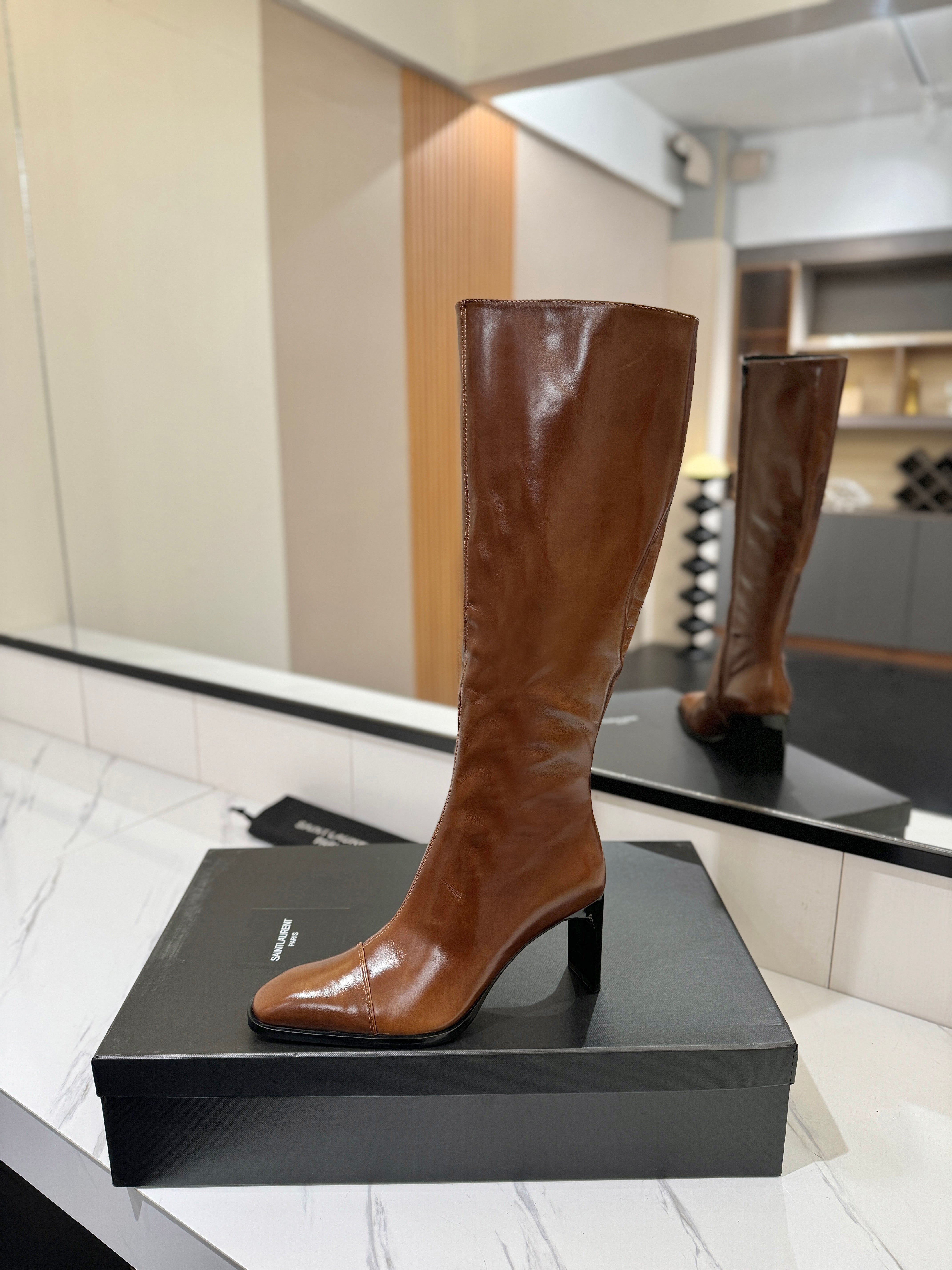 YSL 25 High-heeled Boot Brown Cowhide 520776