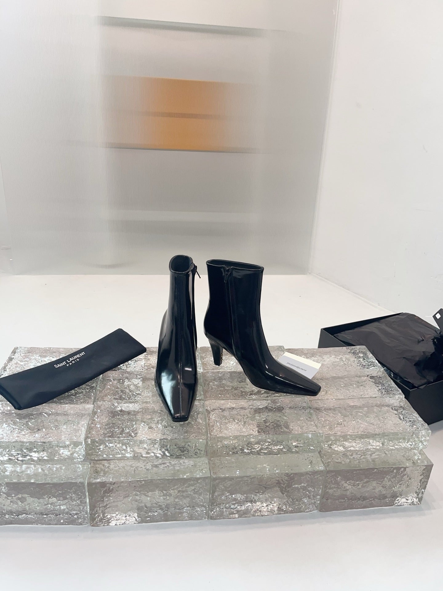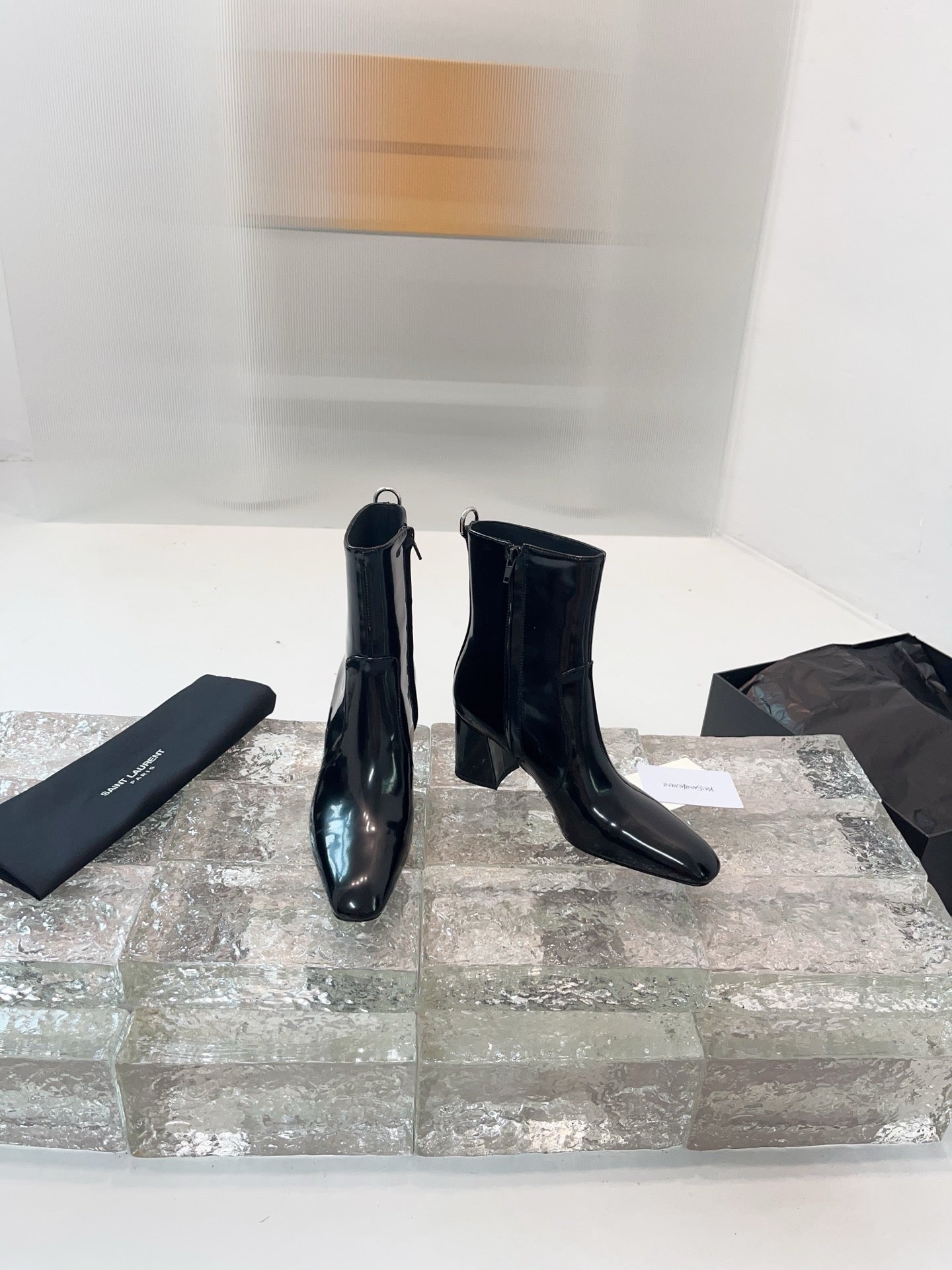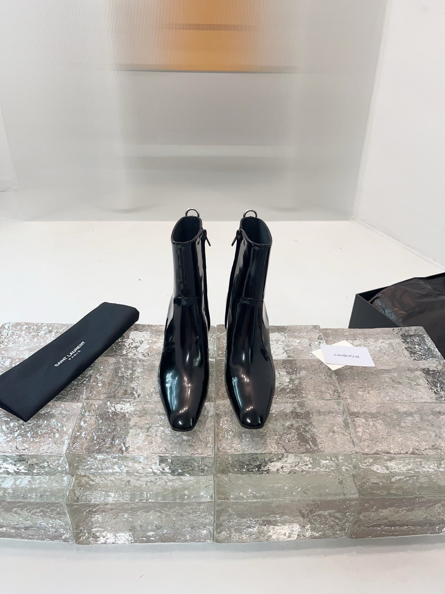 YSL 25 Zipper Sleeve Boot Black Patent Cowhide 520791
