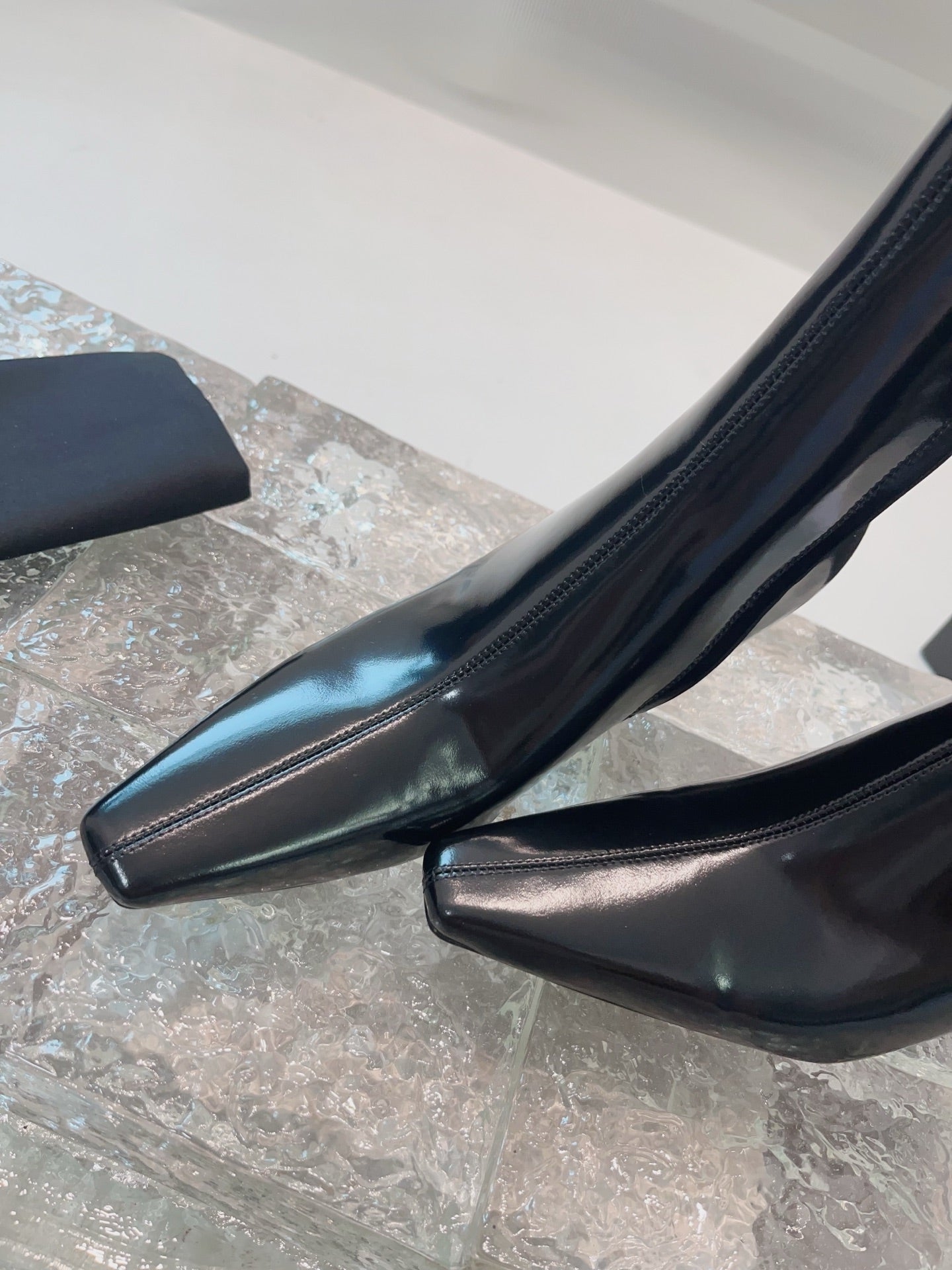 HIGH SLINGBACK IN BLACK GLOSSY CALFSKIN SPLICED WITH TPU