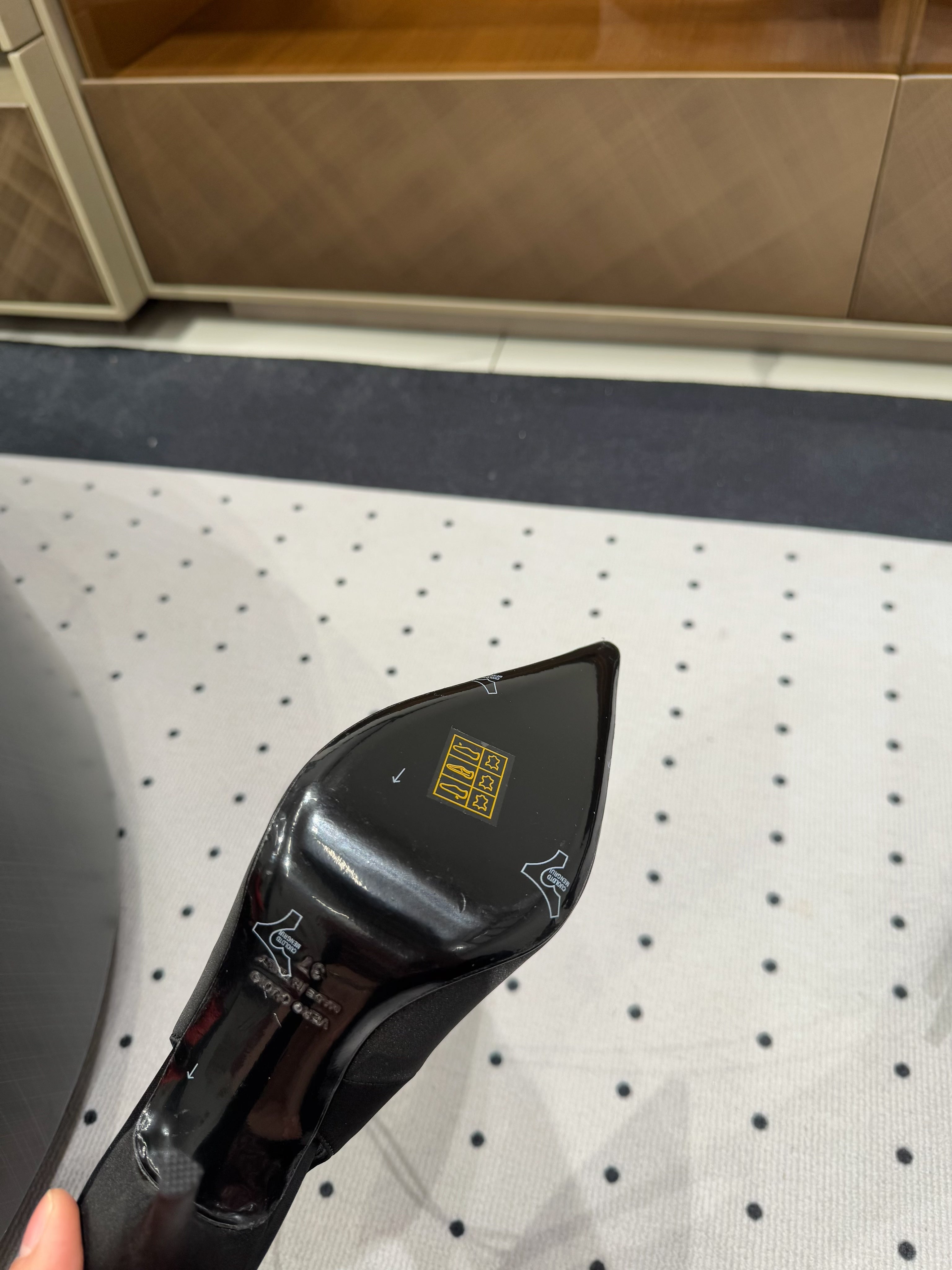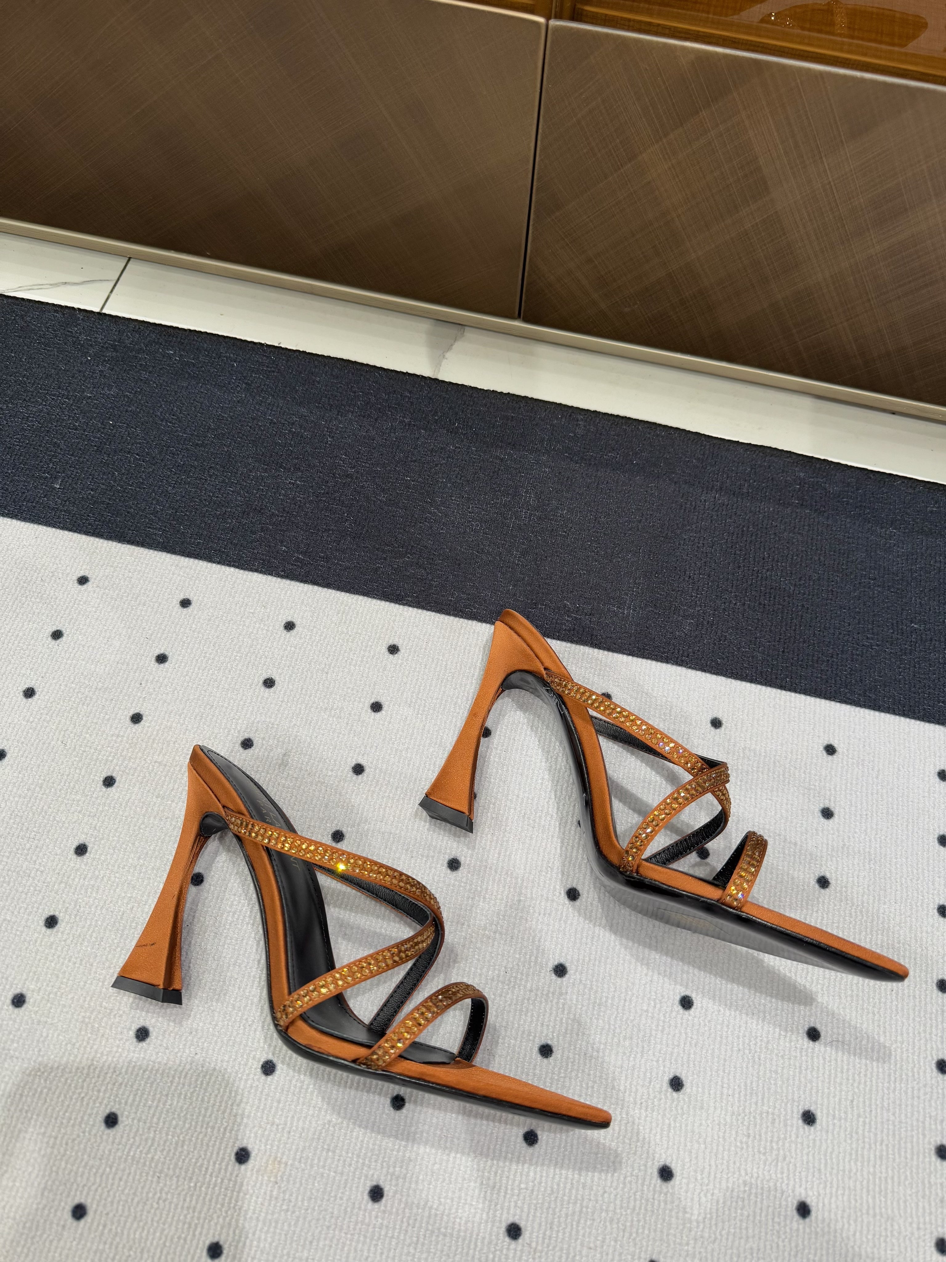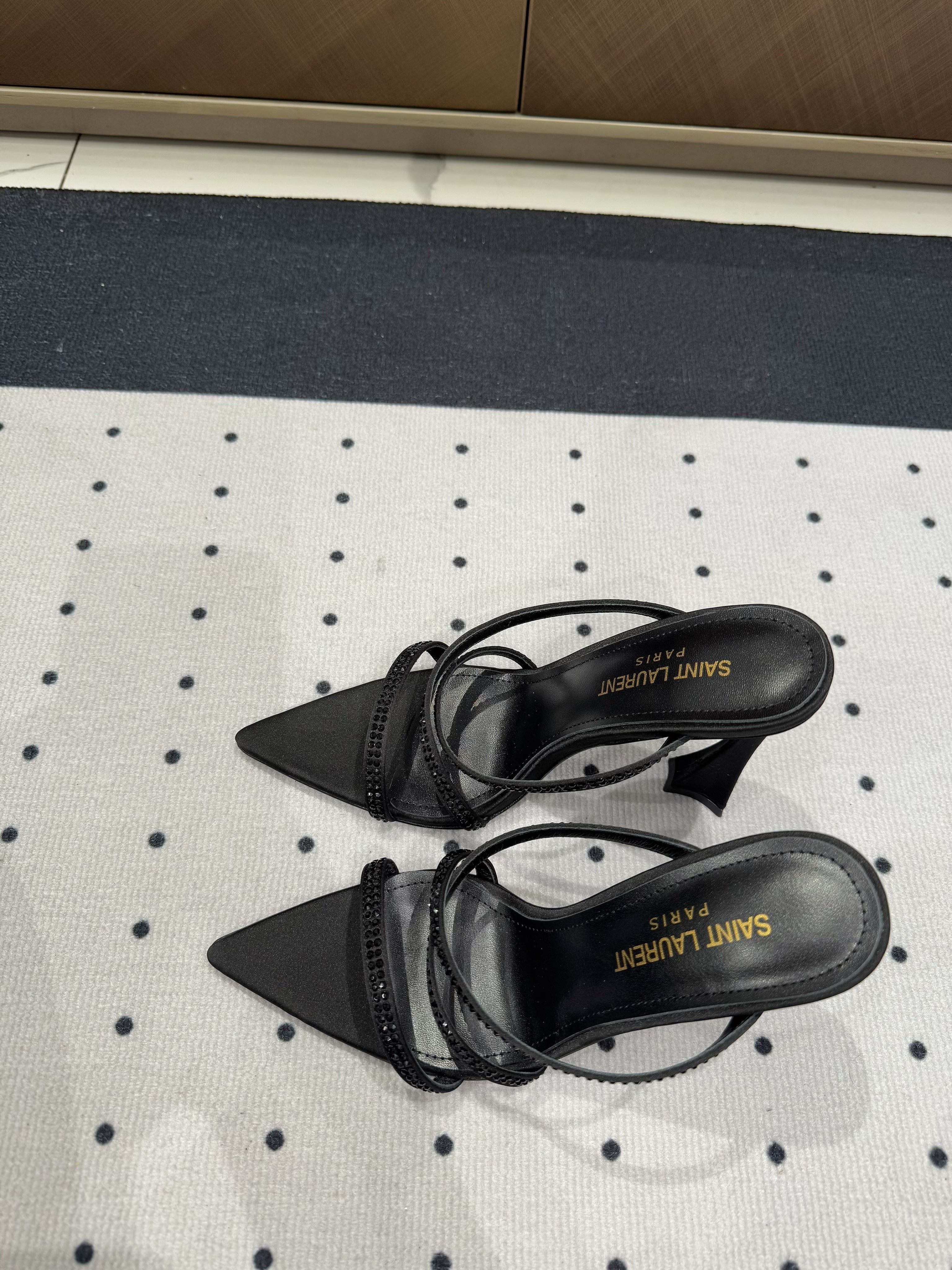 HIGH HEEL SANDALS IN BLACK SILK WTH STRAPS ATTACHED GEM