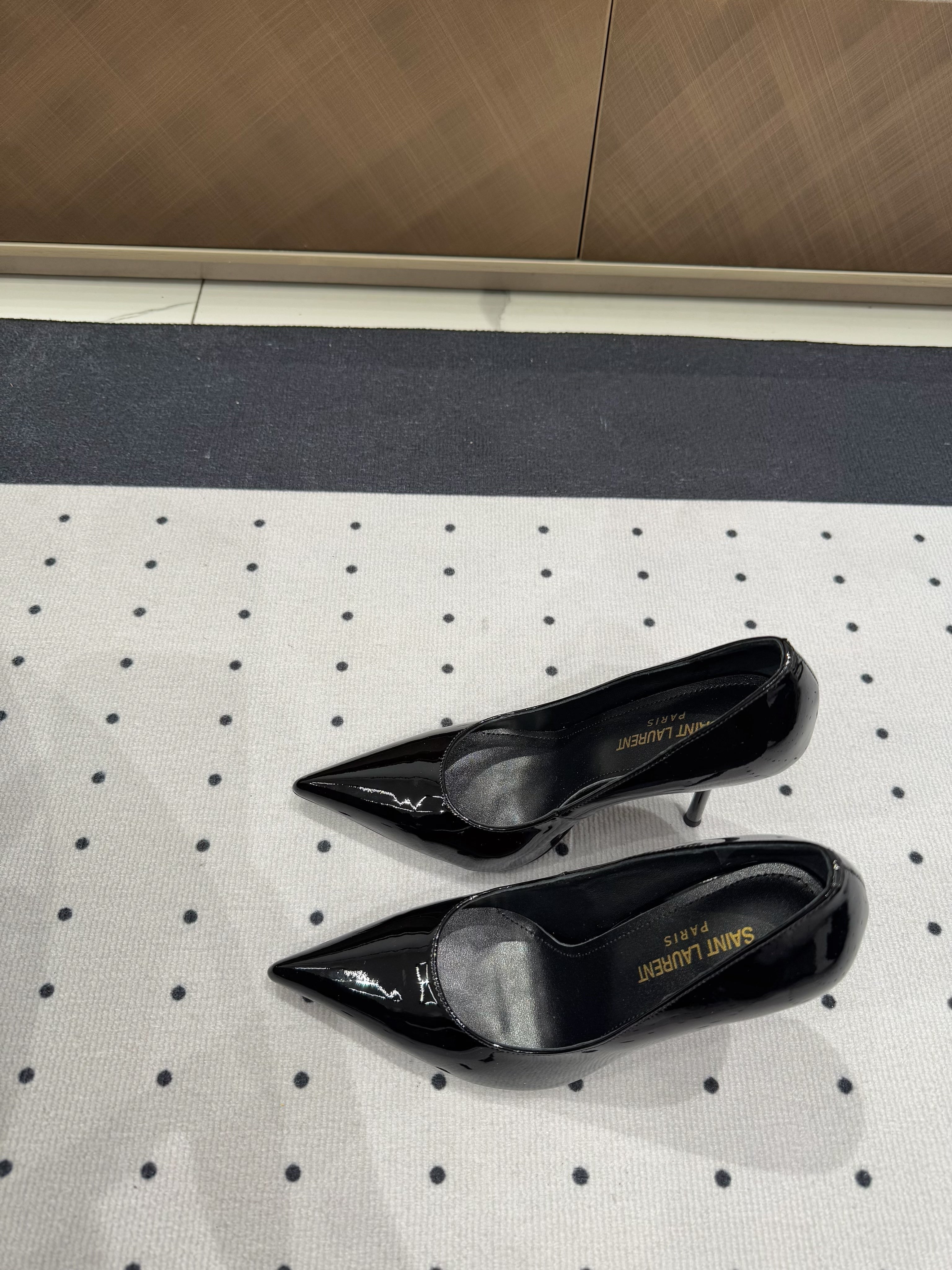 OPYUM BLACK HEEL PUMPS IN BLACK GLOSSY CALFSKIN
