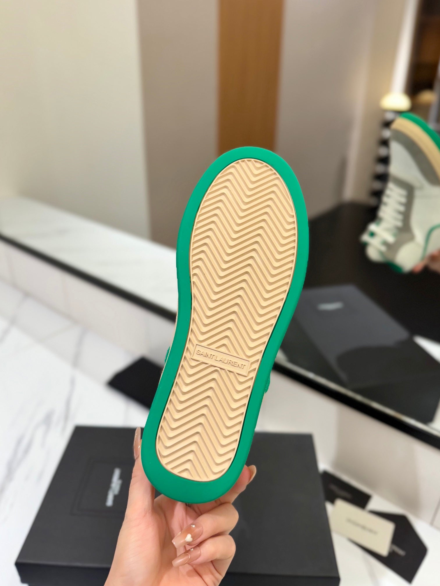 MID-TOP SNEAKERS IN WHITE PERFORATED LAMBSKIN AND GREEN SUEDE