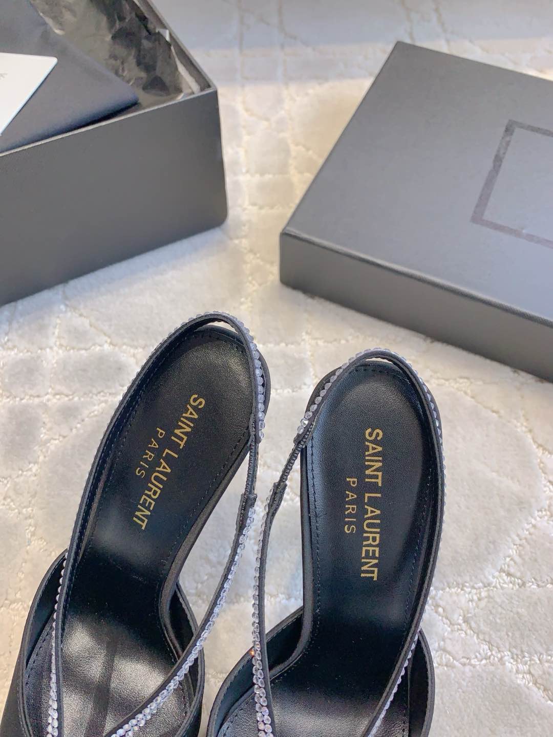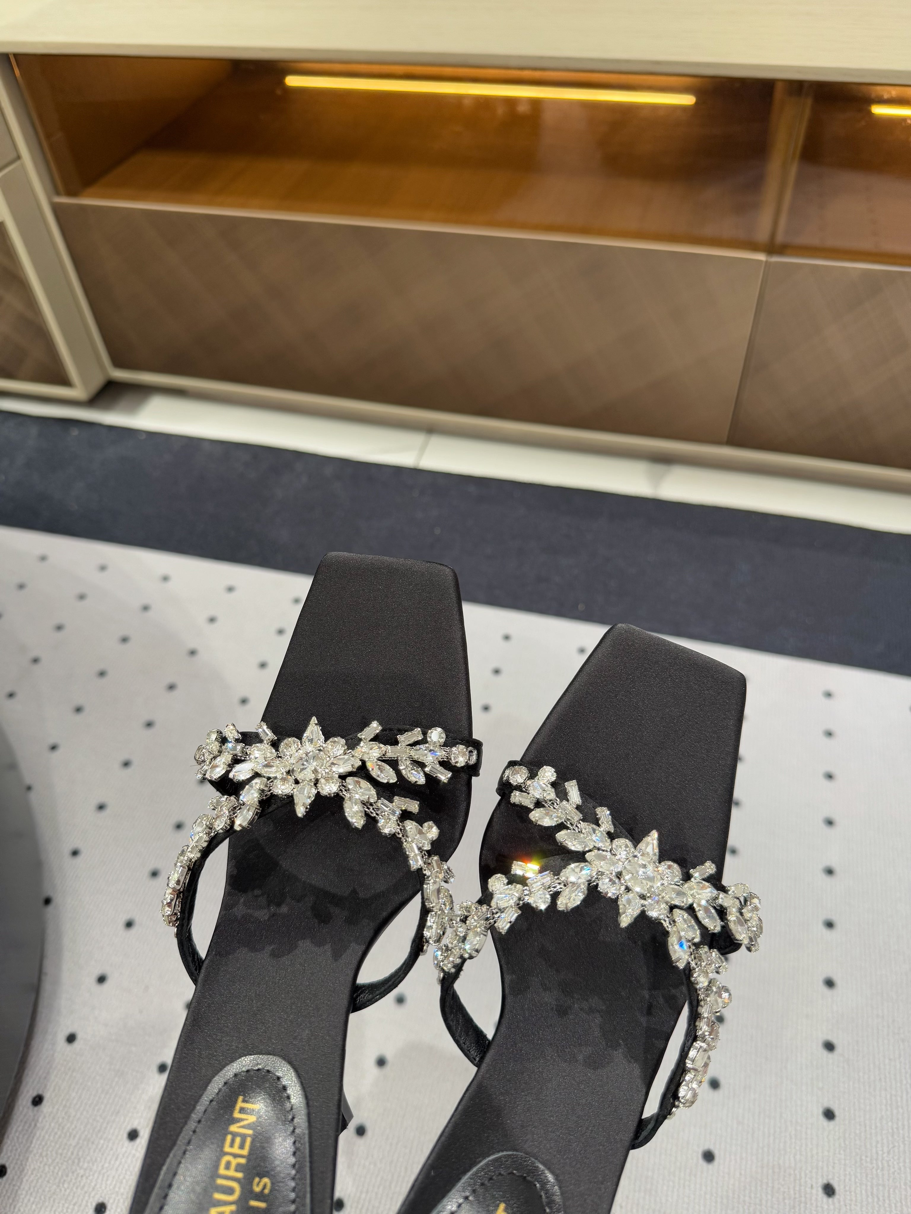 HIGH HEEL SANDALS WITH SHINY RHINESTONES STRAP IN BLACK SILK