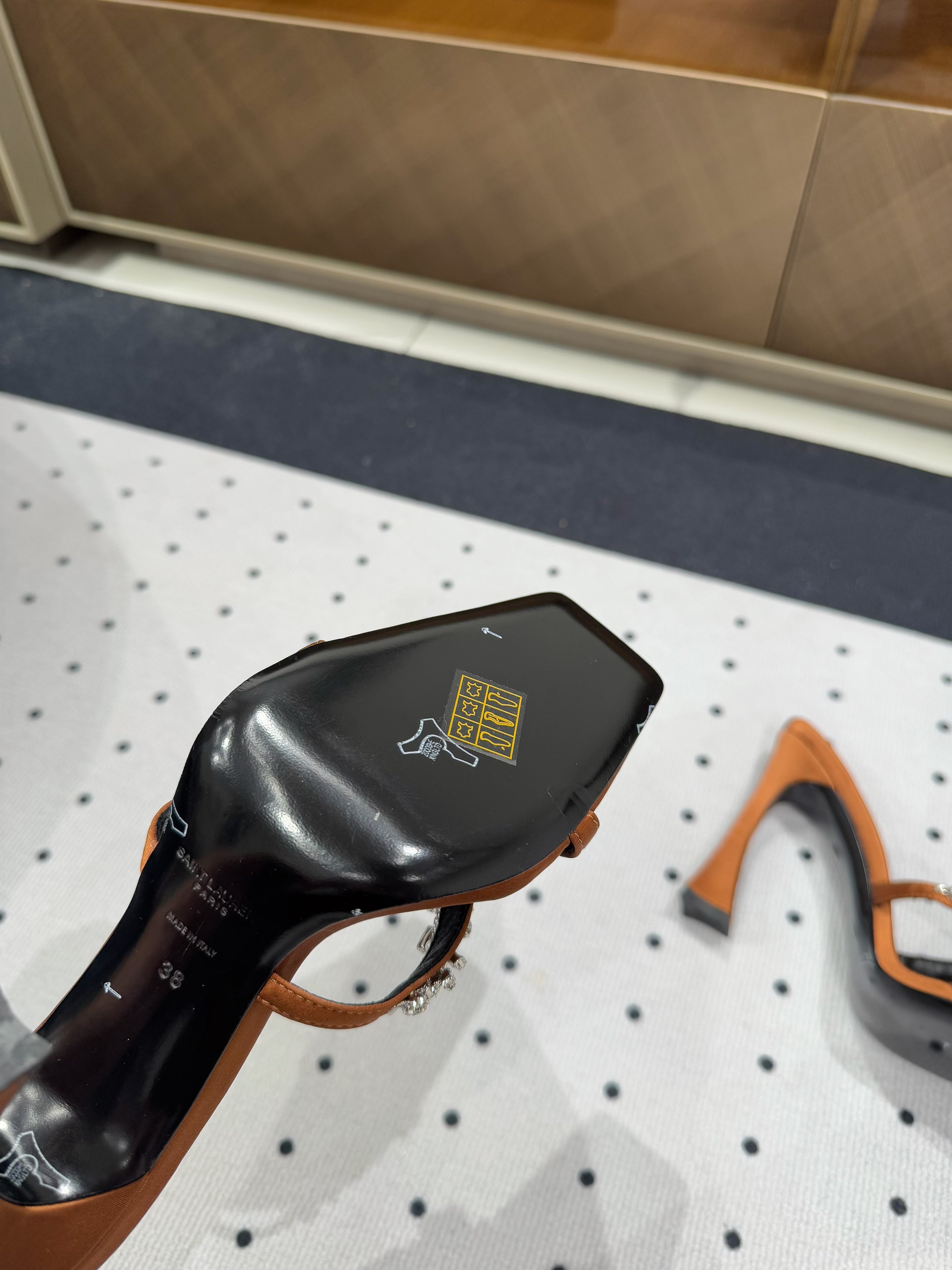 HIGH HEEL SANDALS WITH SHINY RHINESTONES STRAP IN GOLDEN BROWN SILK