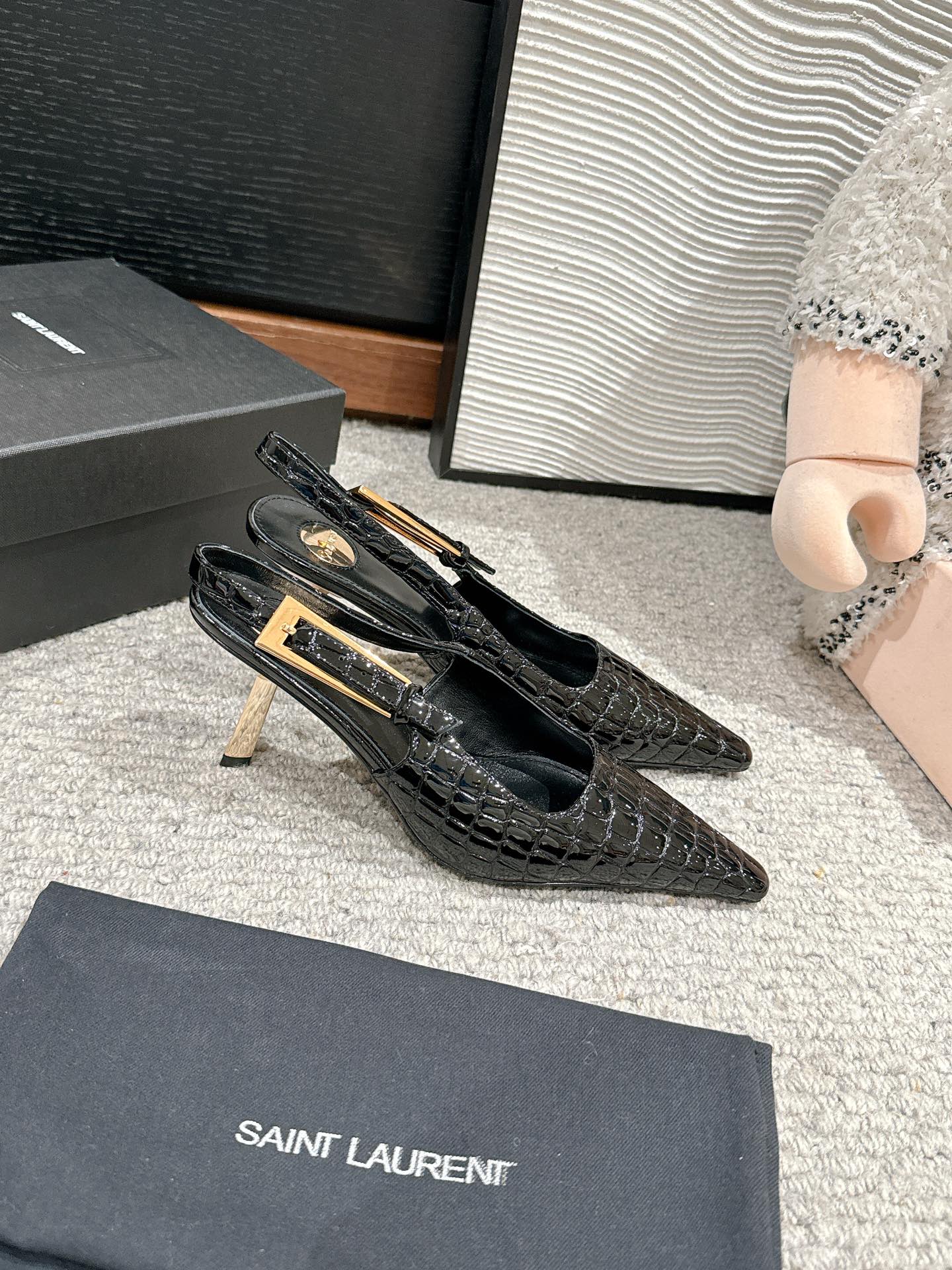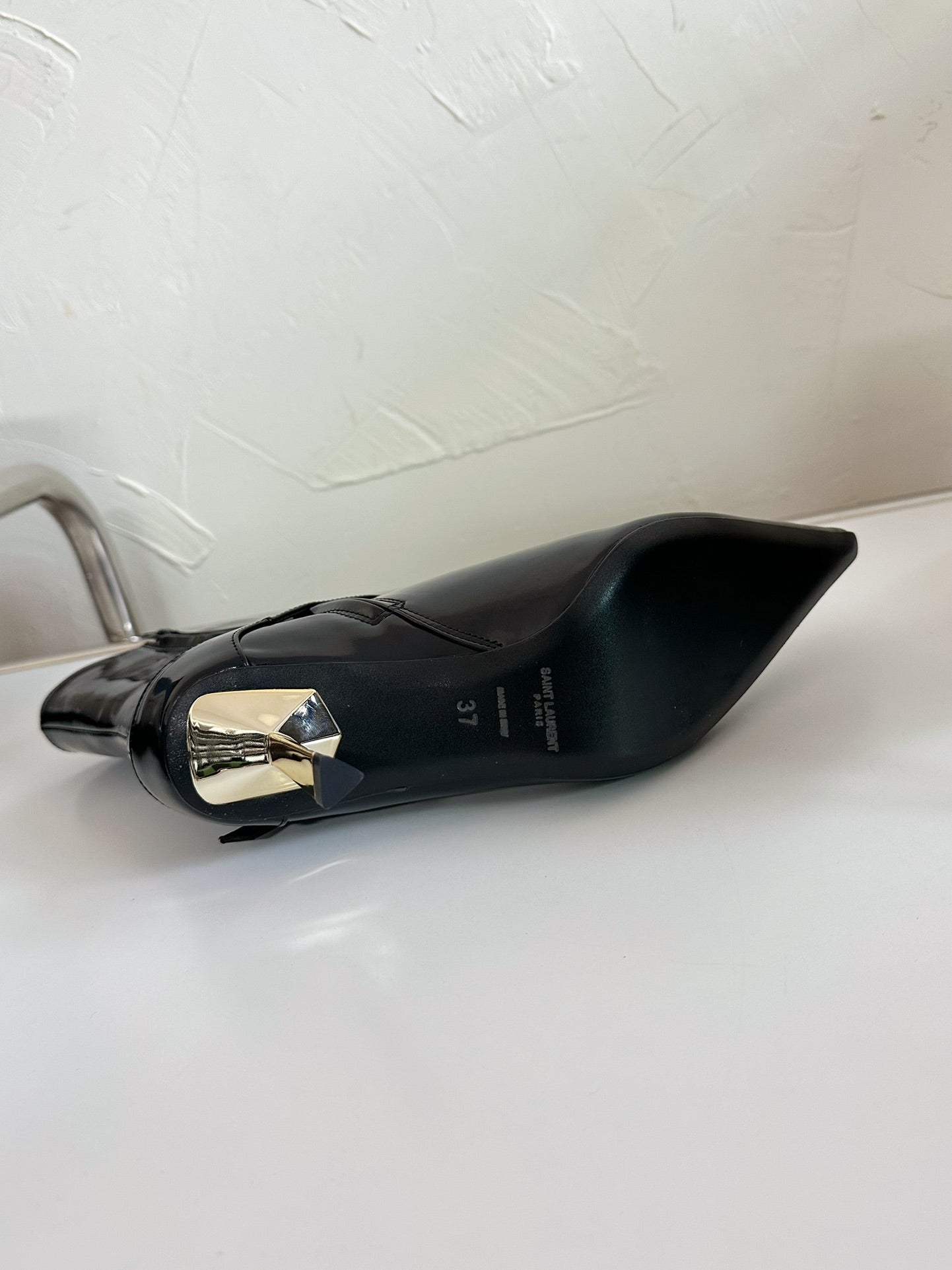LEE SLINGBACK MID PUMPS IN BLACK CROCODILE SHINY CALFSKIN