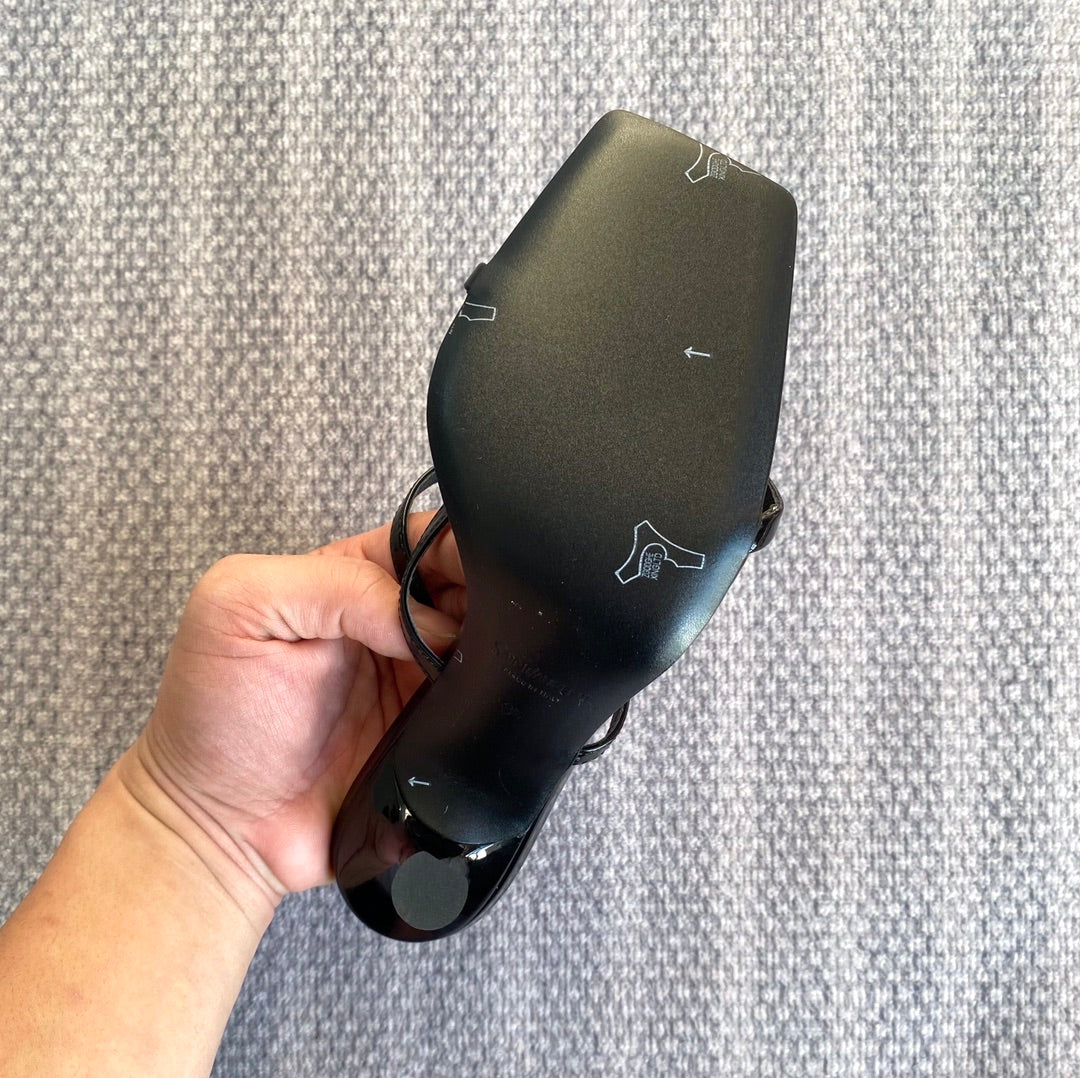HIGH HEEL SANDALS IN BLACK GLOSSY CALFSKIN WTH STRAPS ATTACHED GEM