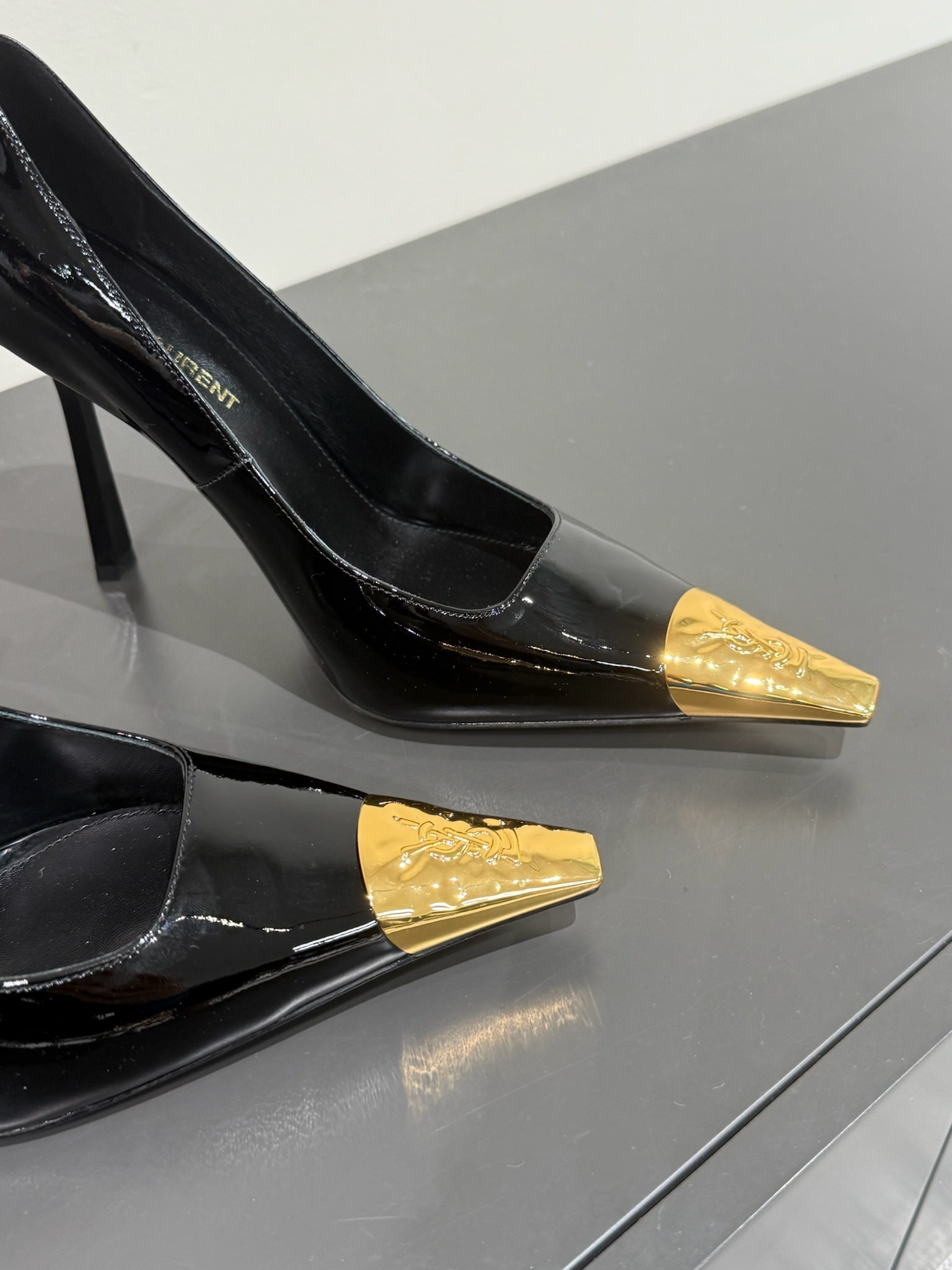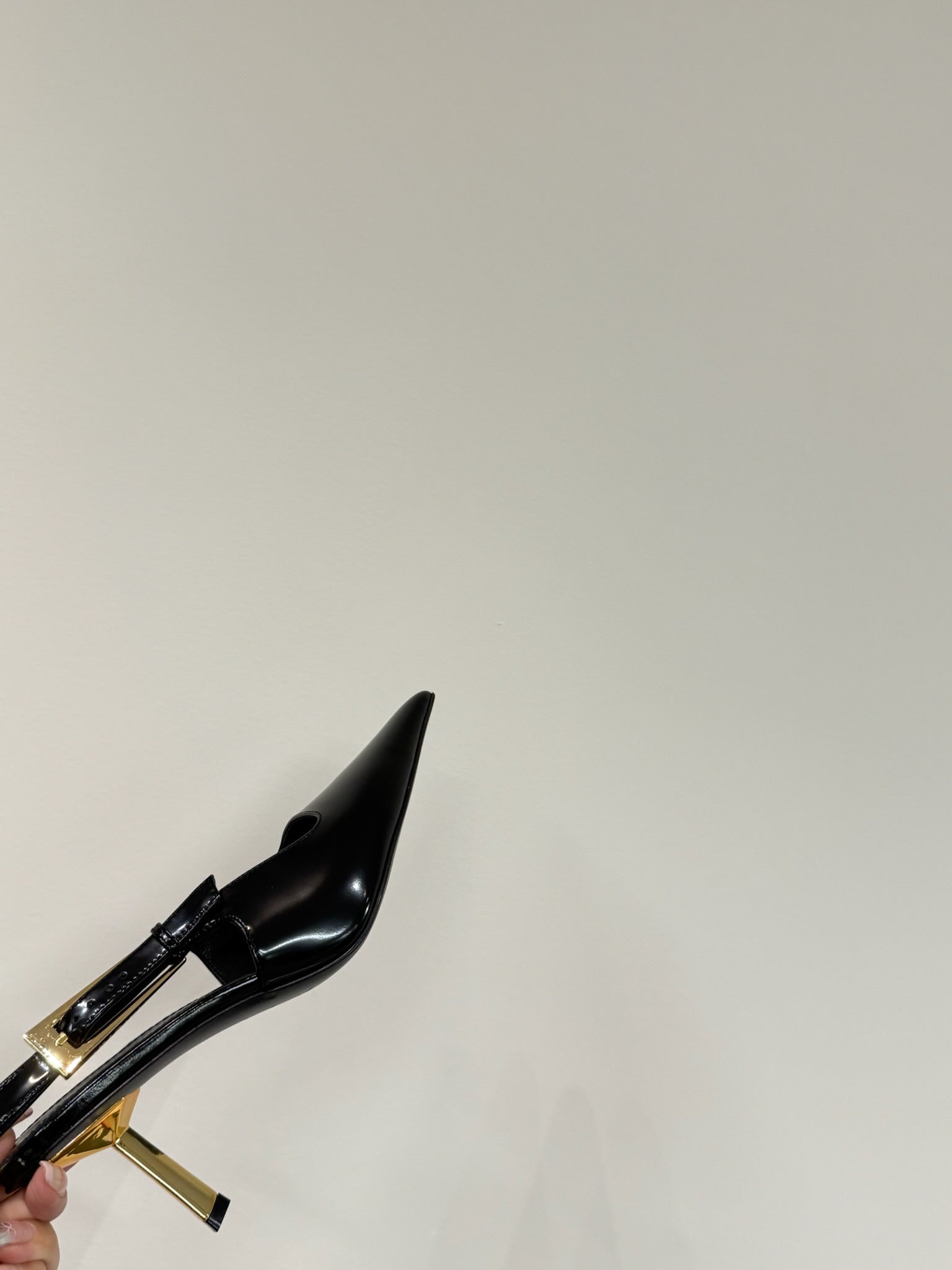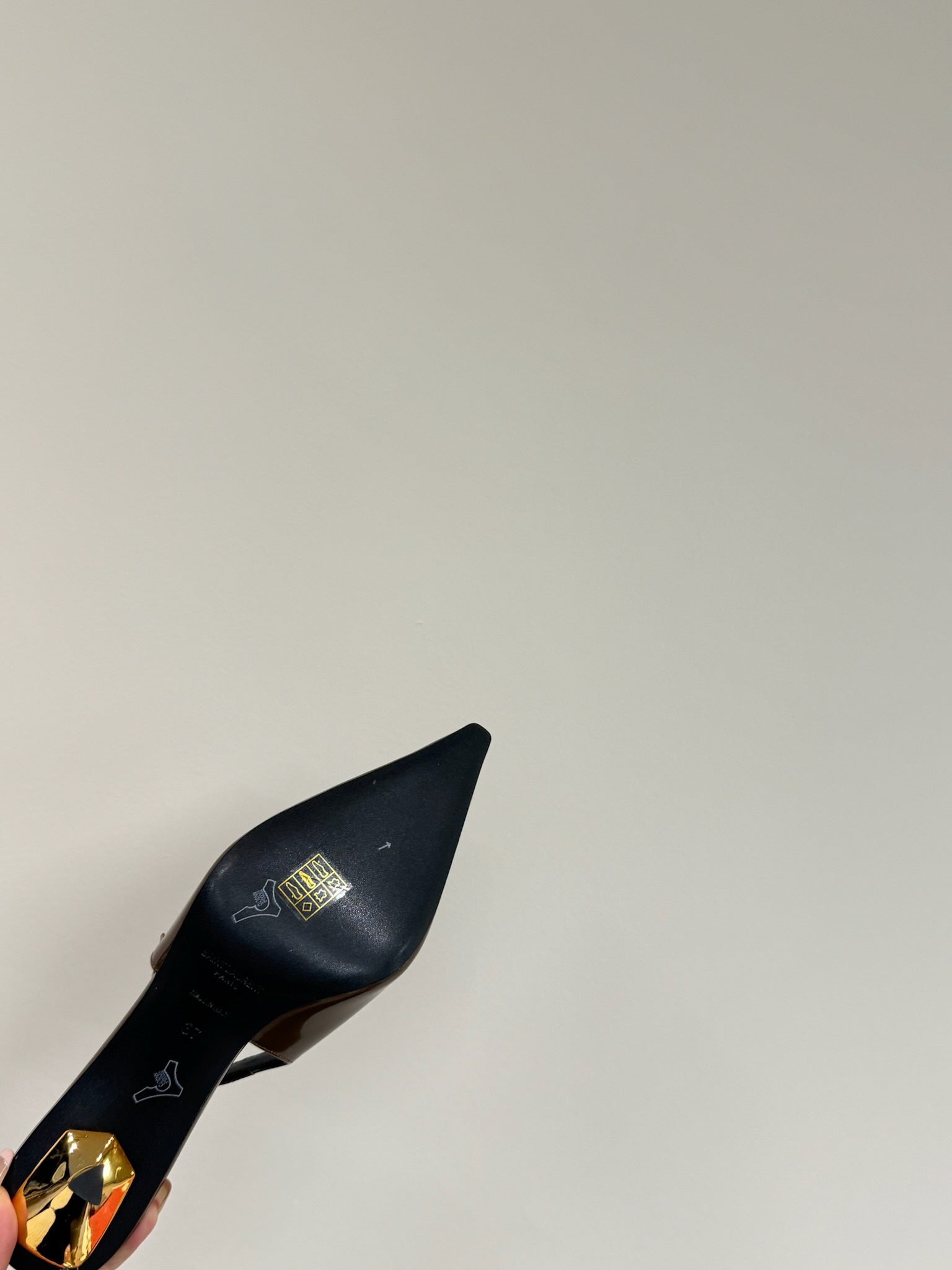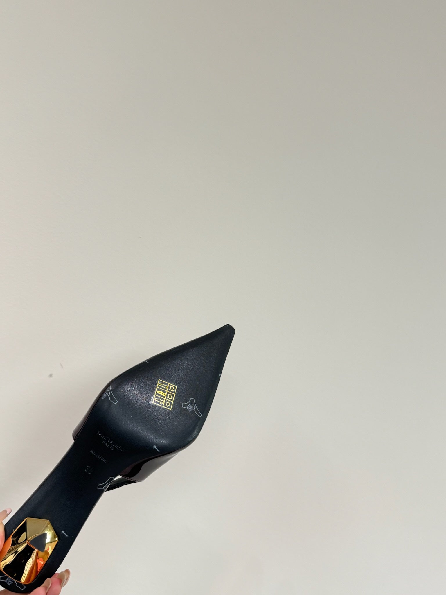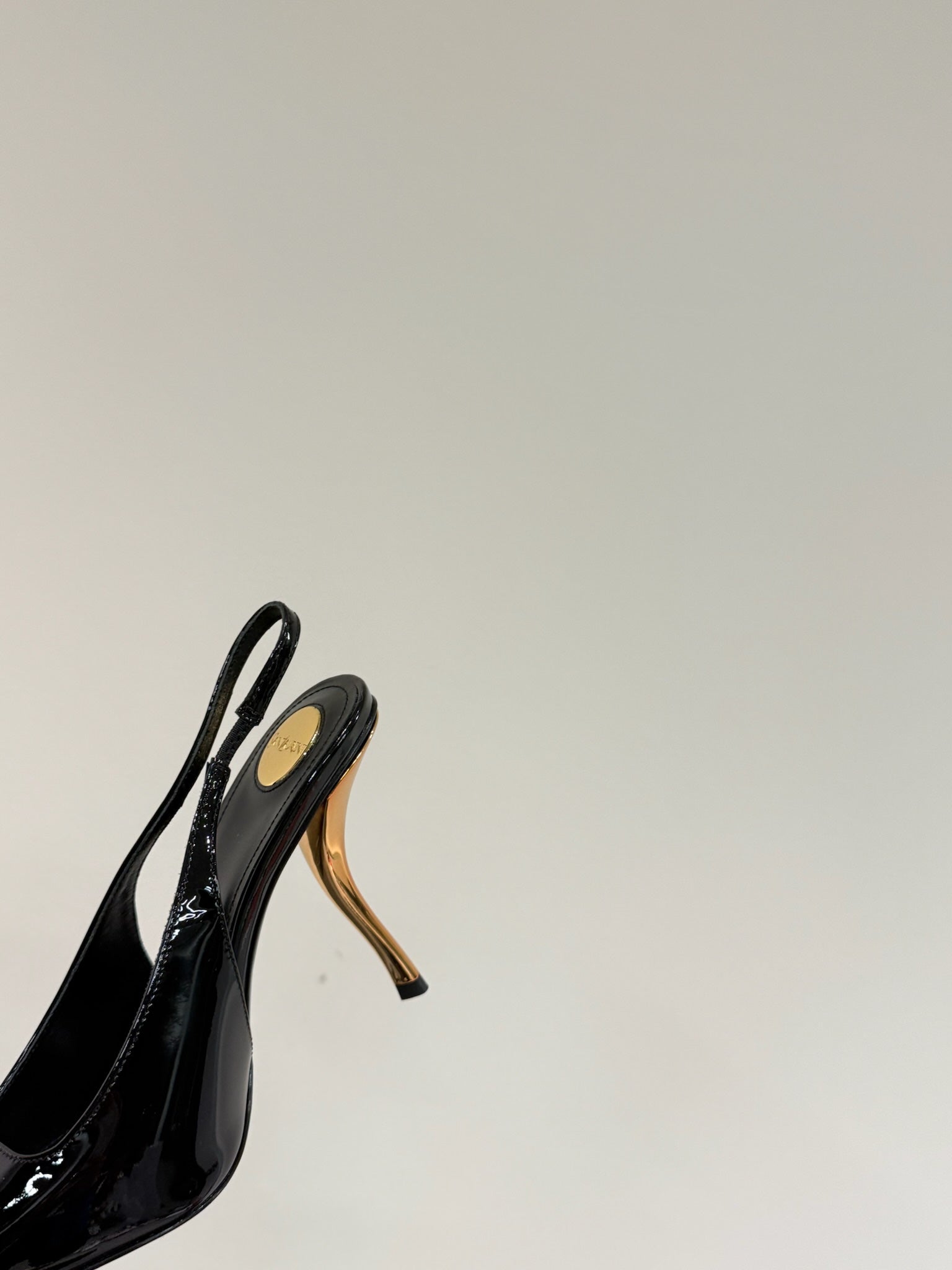 AIMÉE SLINGBACK PUMPS IN BLACK GLOSSY LAMBSKIN
