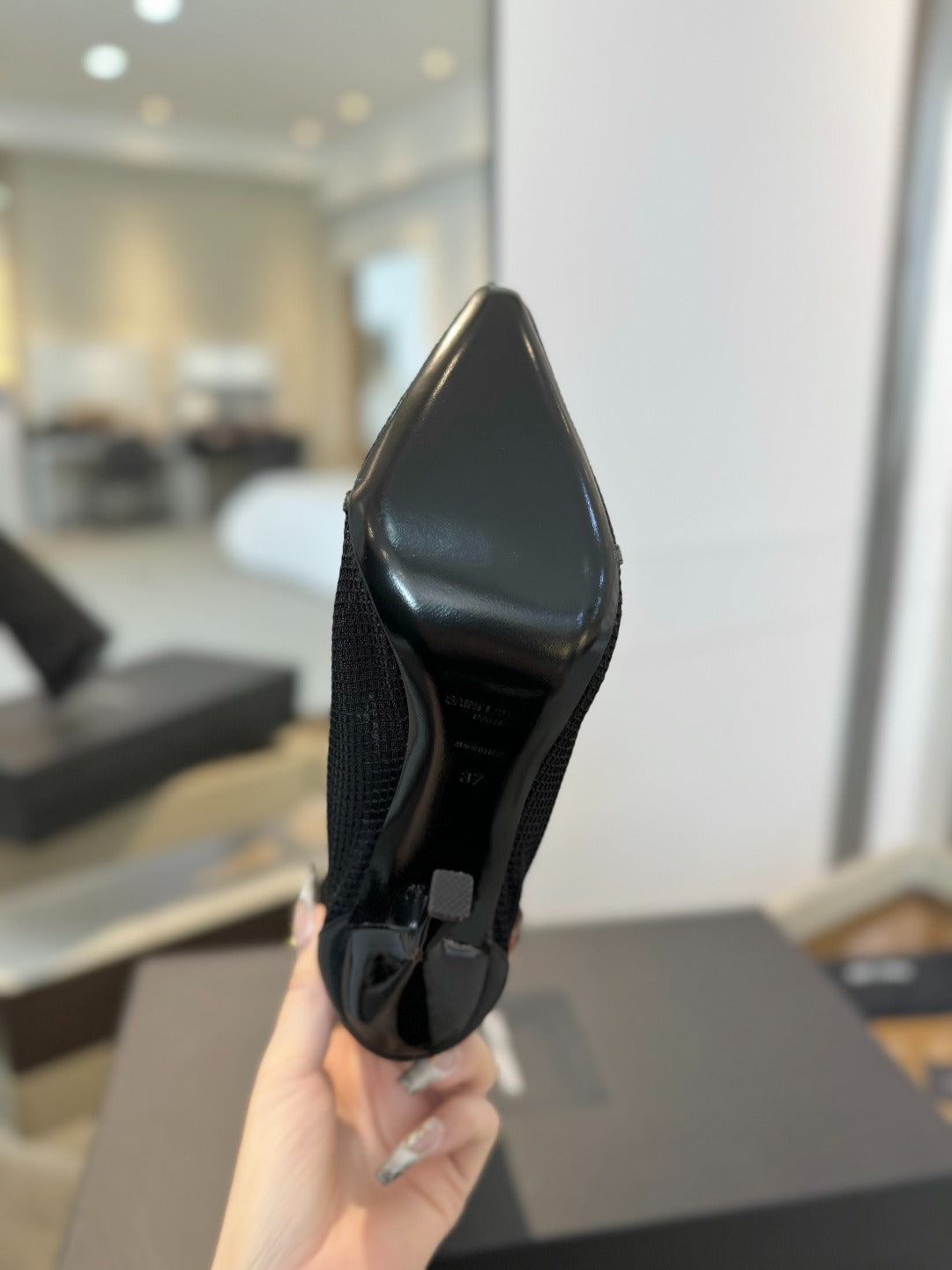 HIGH HEEL POINTED-TOE ANKLE BOOTS IN BLACK SHINY CALFSKIN