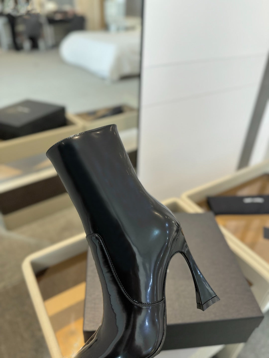 LEE BOOTIES IN BLACK GLAZED CALFSKIN