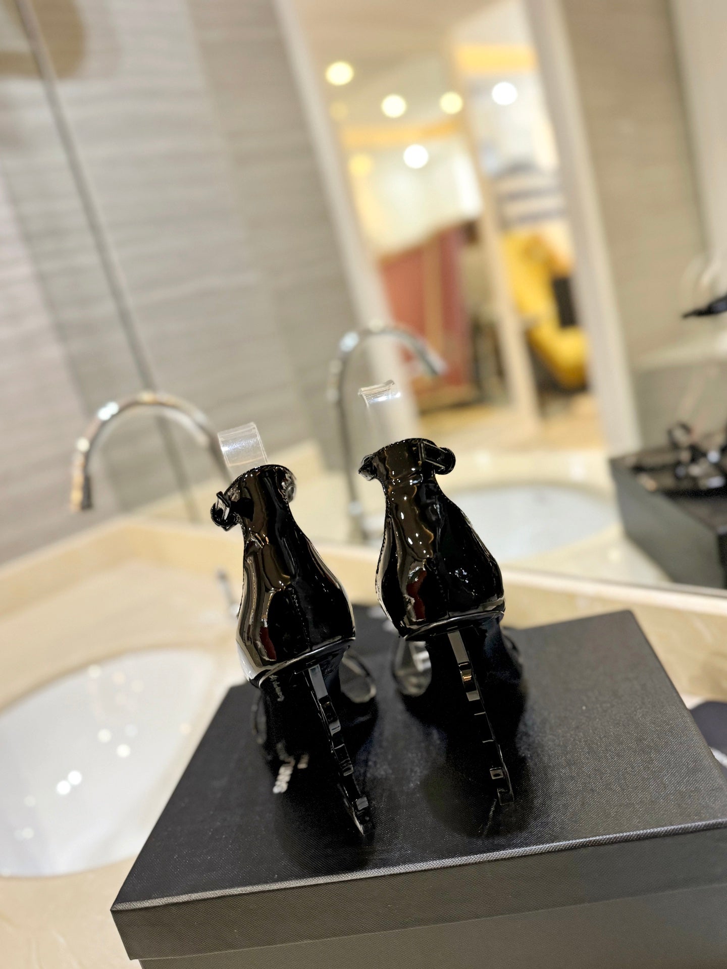 RENDEZ-VOUS SANDALS 70 IN SATIN CREPE PATENT BLACK LEATHER