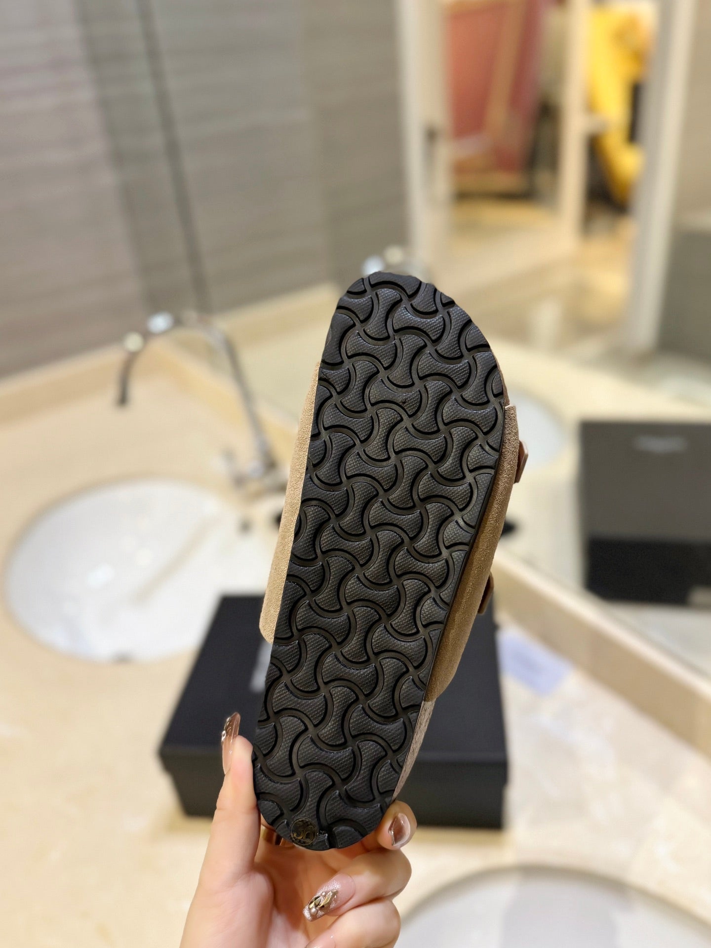 SL Flat Sandal Women Brown Seude Grey Calfskin