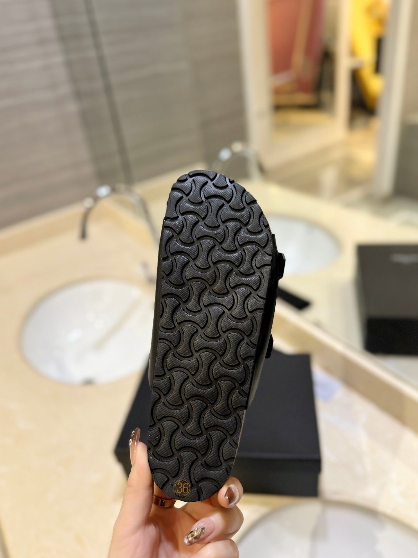 SL BARBARA MULES 55 BLACK CALFSKIN