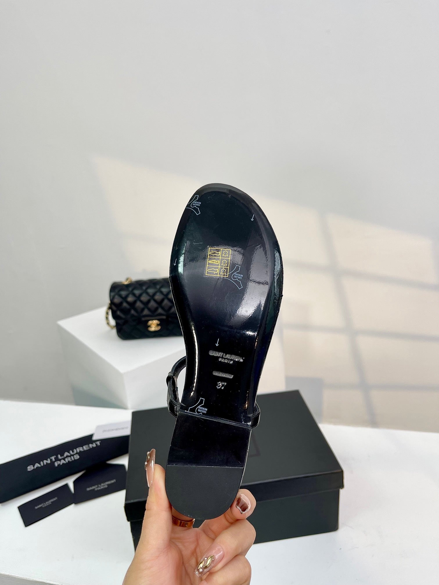 SL LOGO FLAT SANDALS BLACK POLISHED CALFSKIN