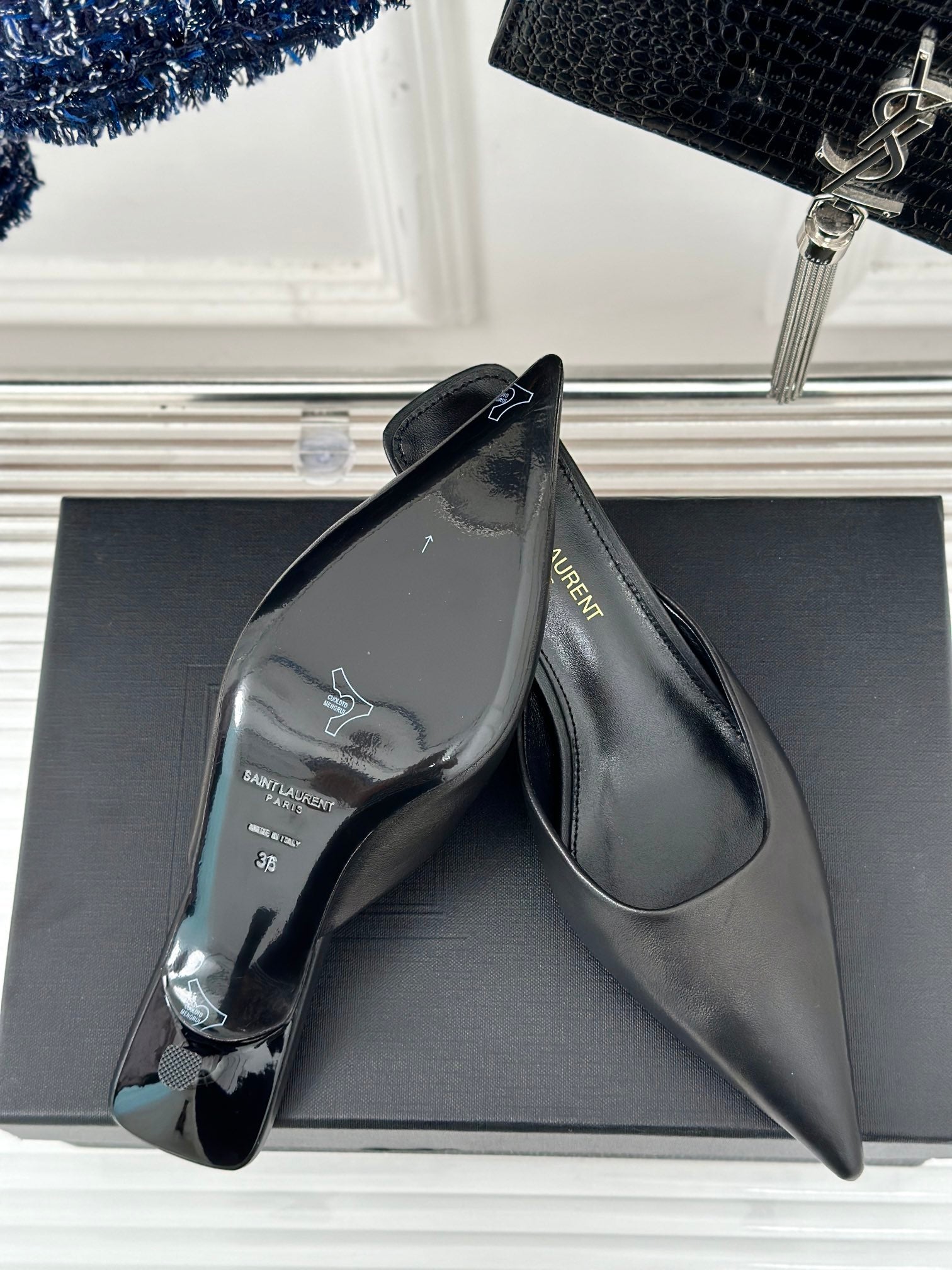 SL BABYLONE SLINGBACK FLAT BLACK POLISHED CALFSKIN