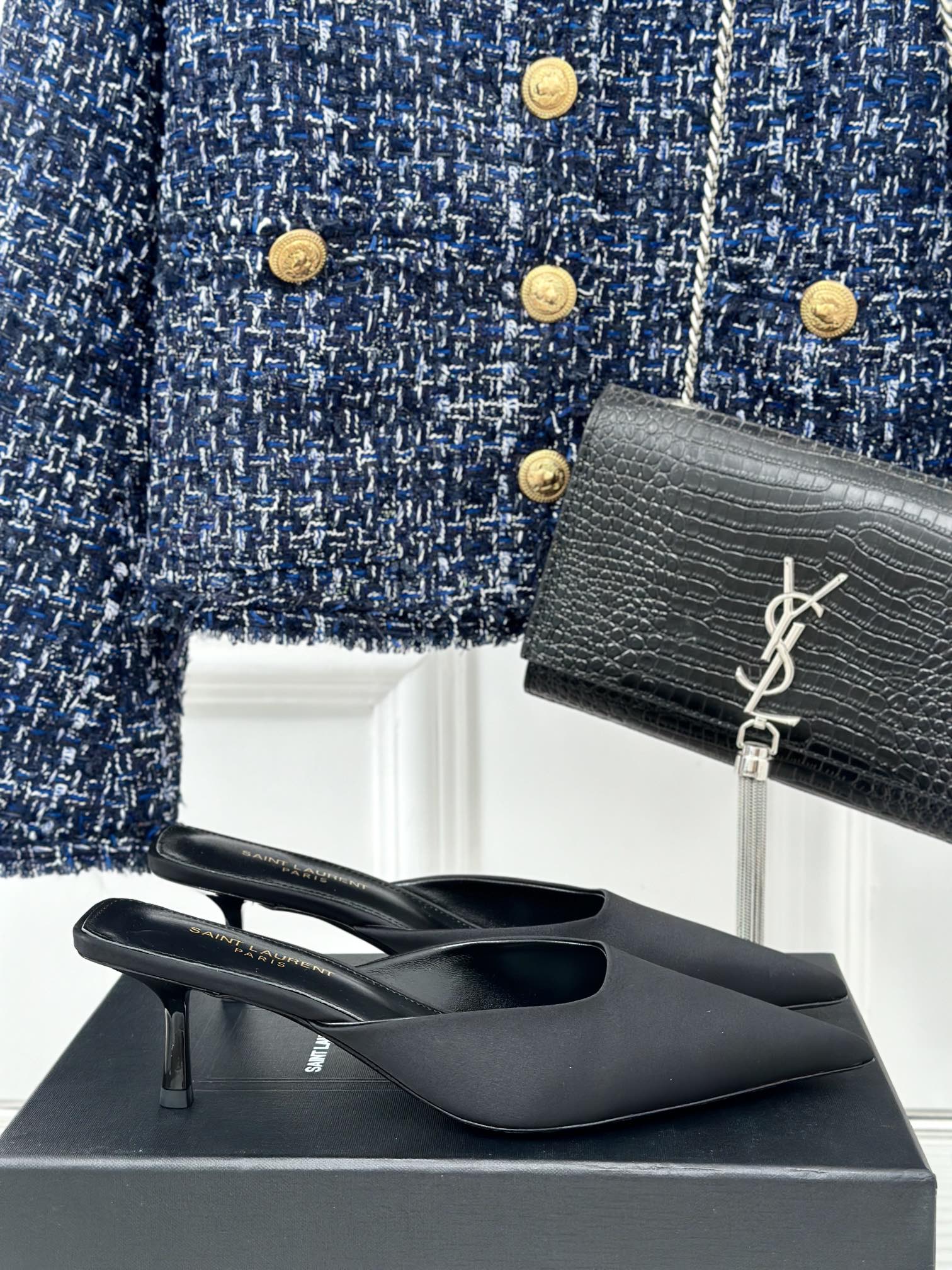 SL JEANNE SLINGBACK PUMPS BLACK SATIN
