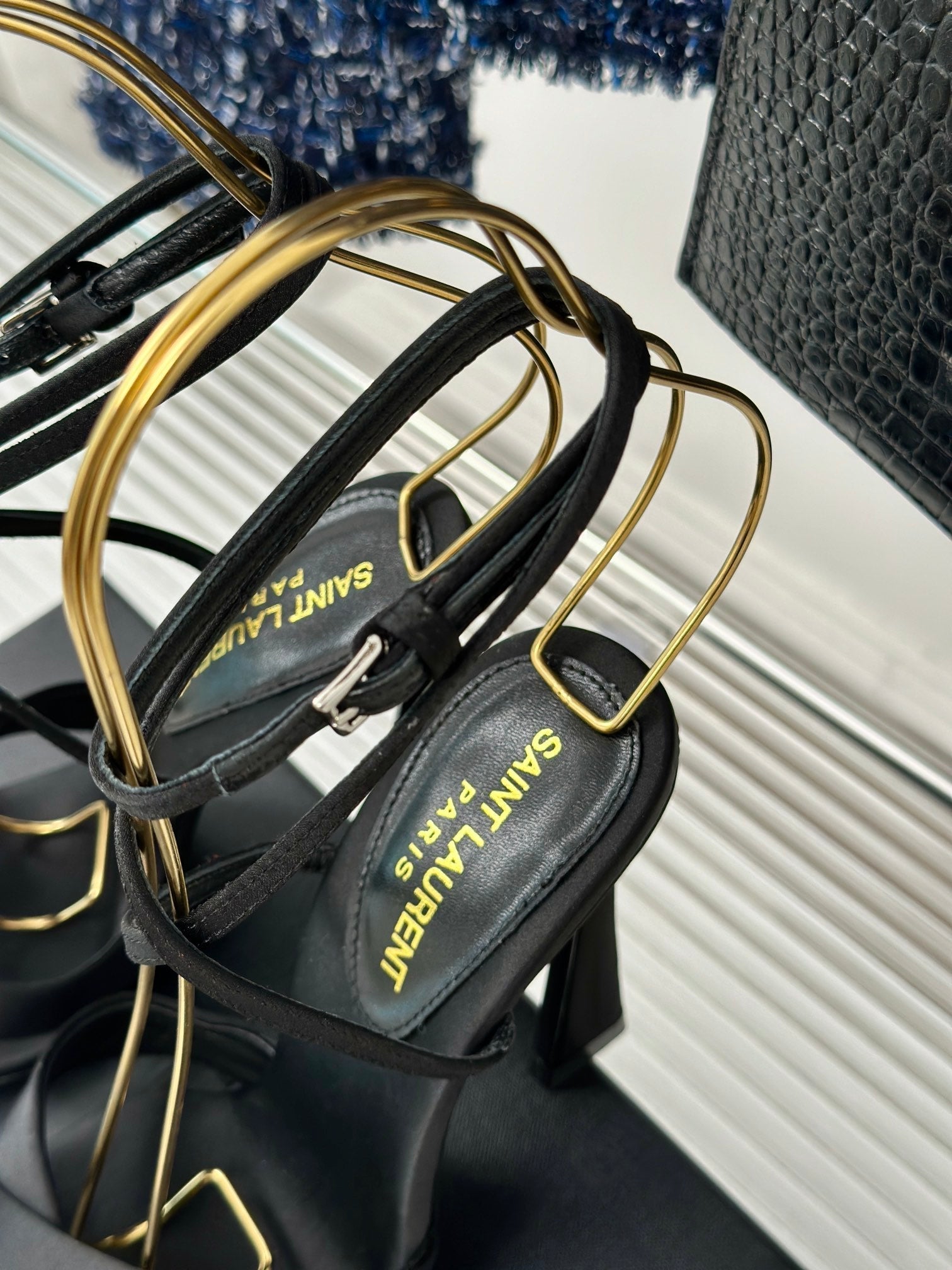 SL OPYUM SANDALS 80 BLACK AND GOLD CALFSKIN