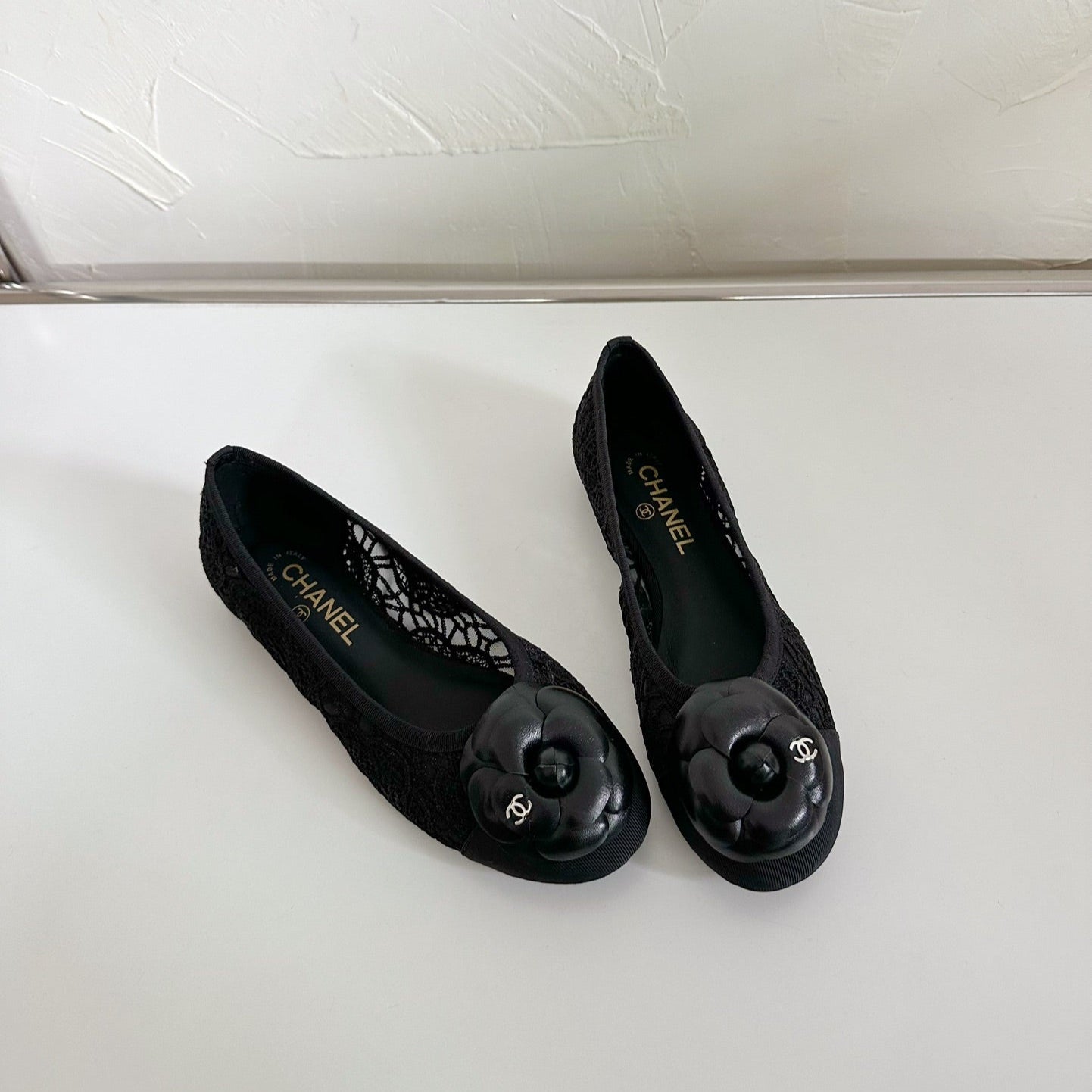 Ballet Flats Black Tweed Grosgrain Flower