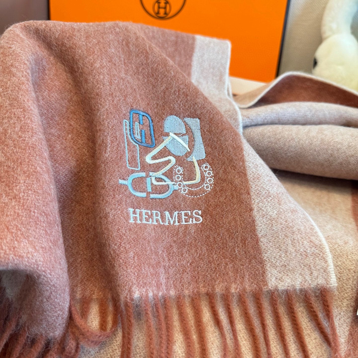 BBR Classic Embroidered Scarf 185CM Dusty Rose Cashmere 292825