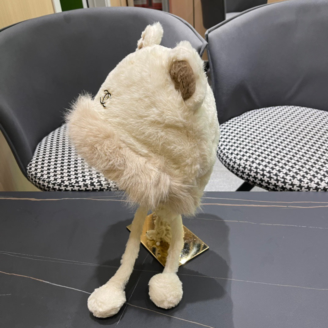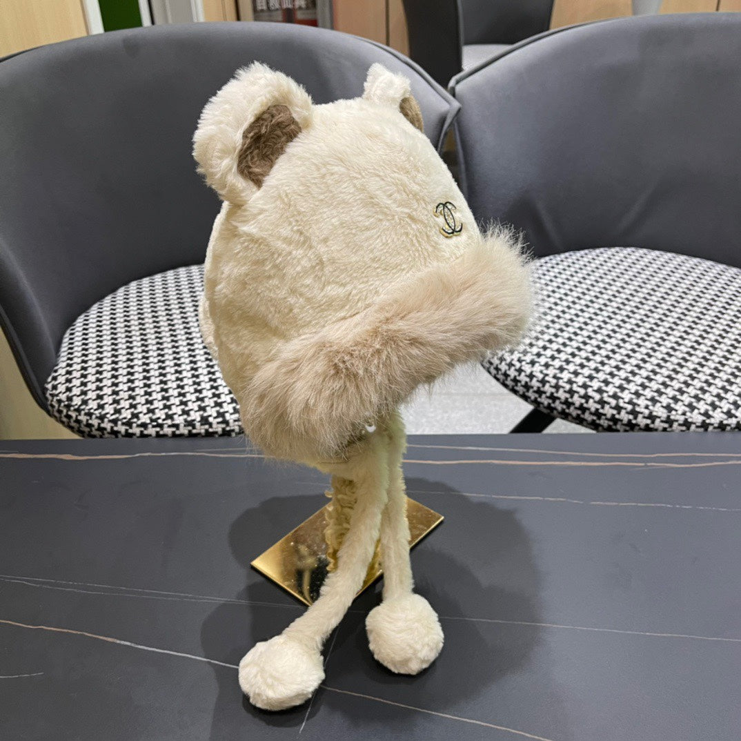 • Women's Hat with plush material and pom-pom design, featuring cute bunny ears, ideal for winter.