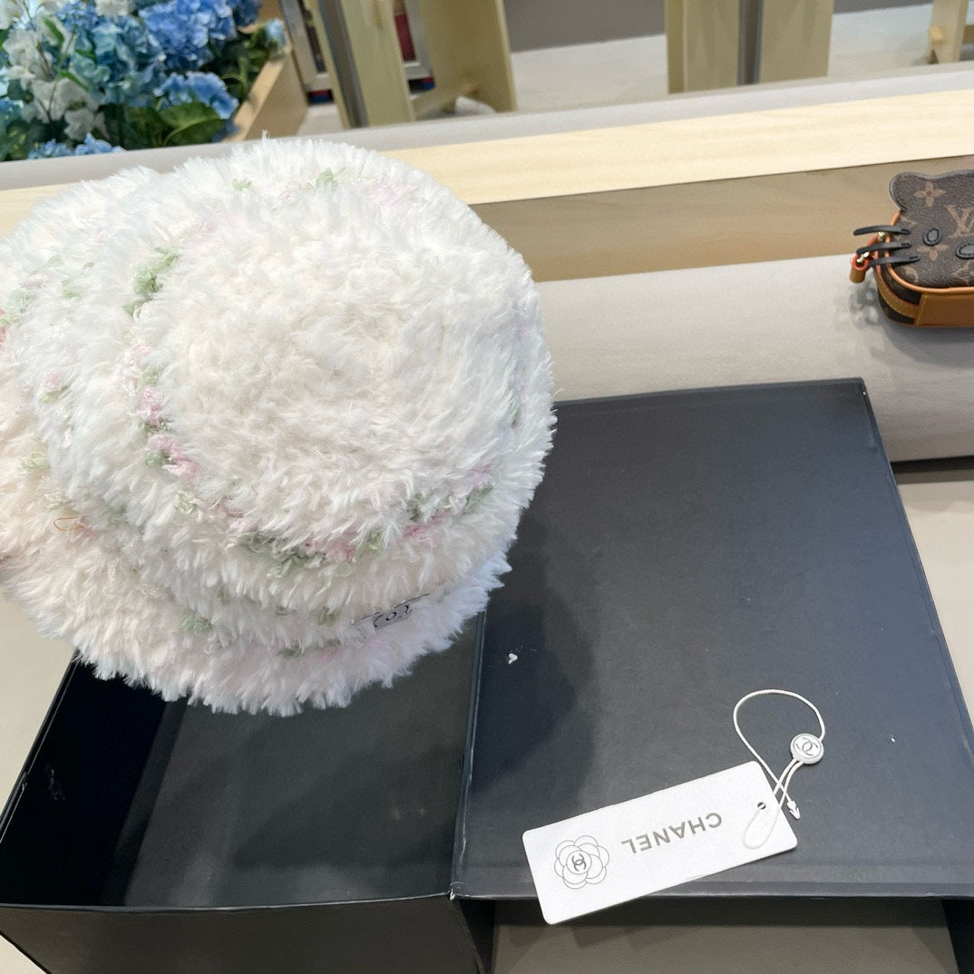 • Stylish plush bucket hat for women, suitable for autumn and winter, designed for warmth with a mixed-color look.