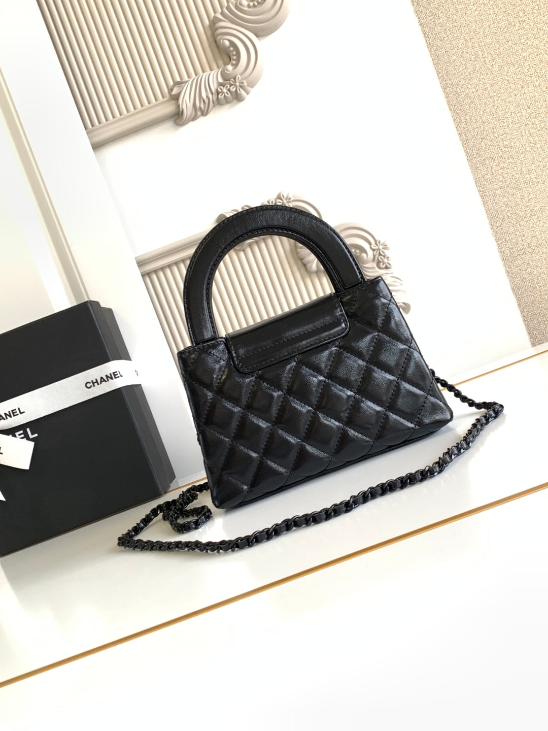 cc 24a nano 19cm kelly shopper bag lambskin black hardware