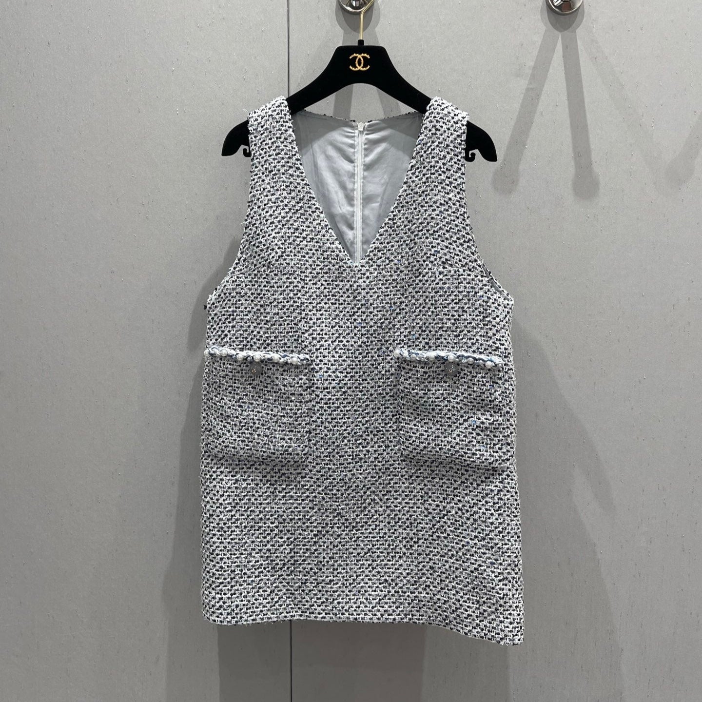 CC 25 Tweed Dress Gray Blue Woven Fabric
