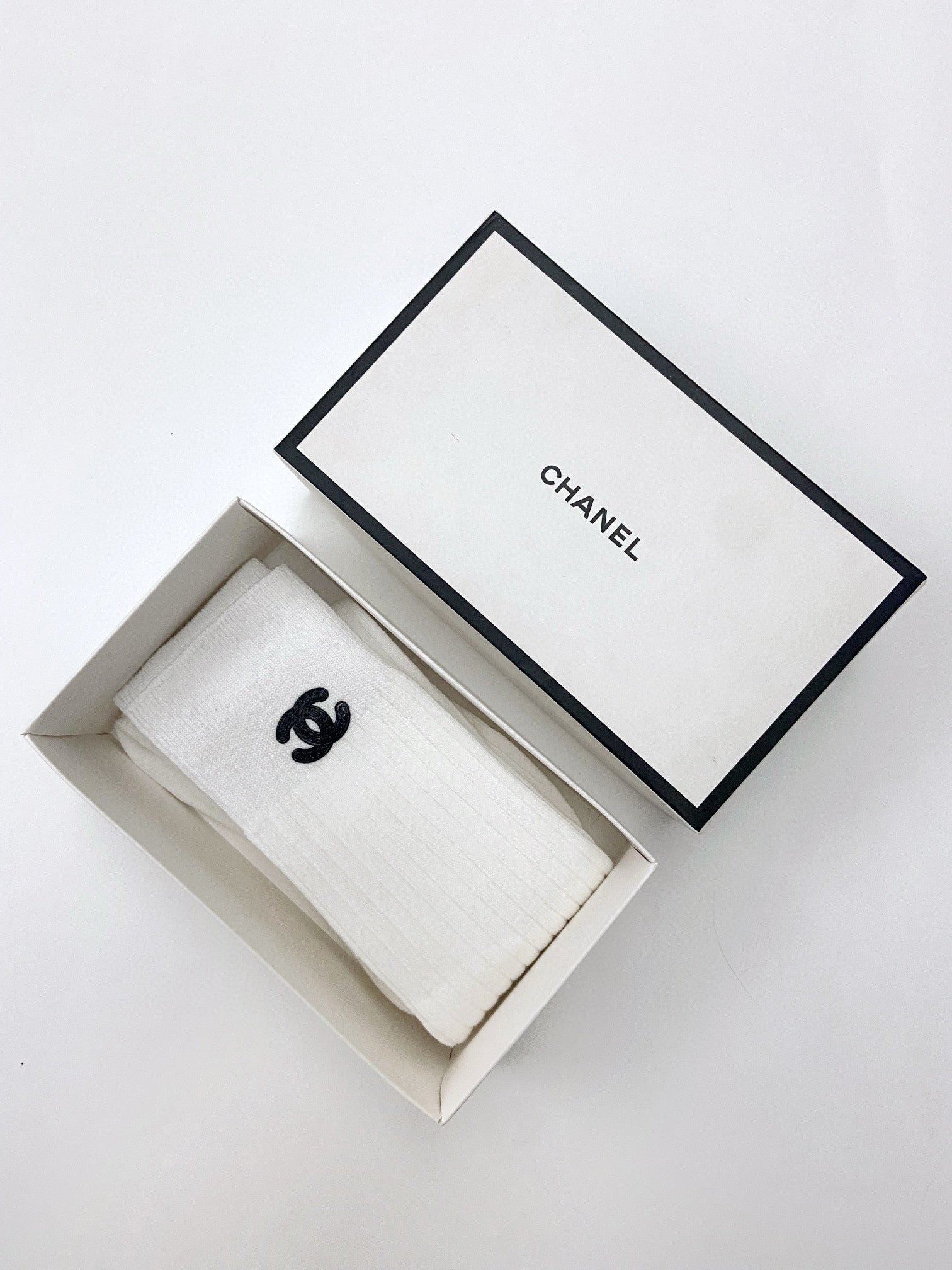 • Classic pair of long socks with Double C letter logo from CC, pure cotton fabric.