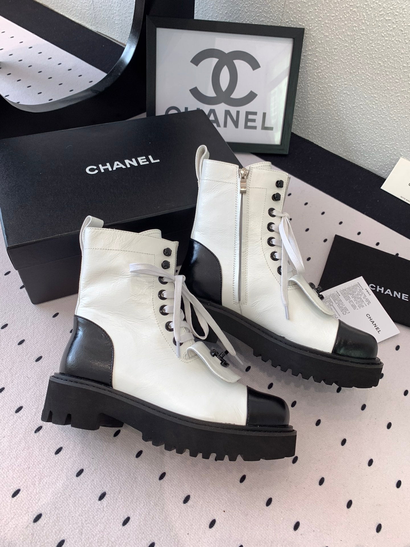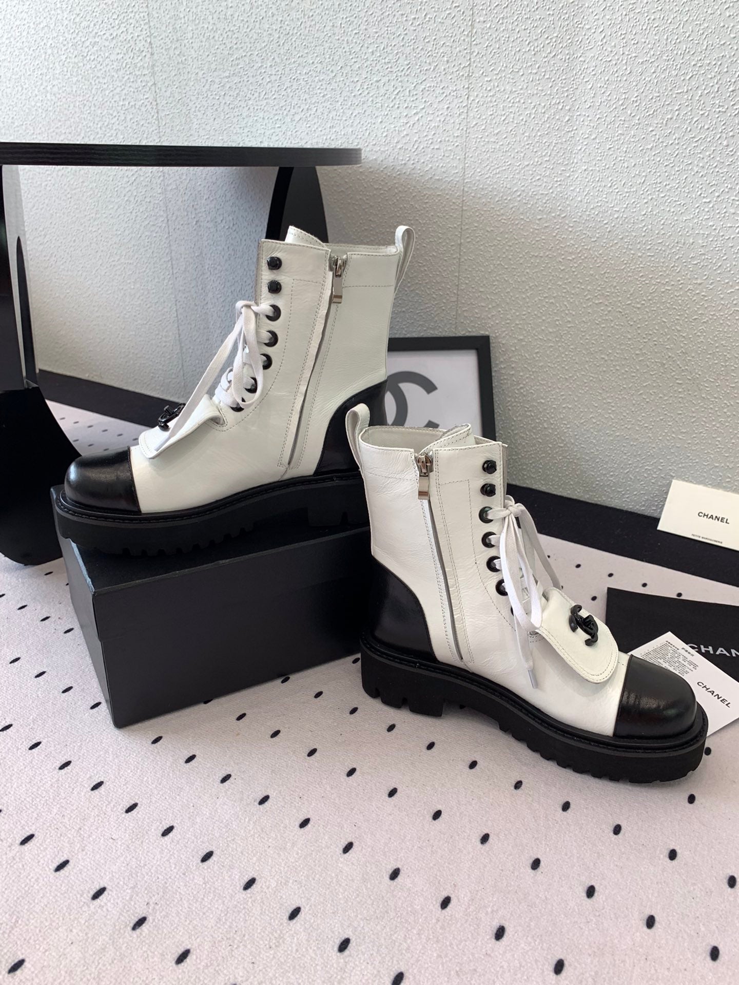 CC Short Boots In White Mix Black Logo Print Lambskin 938060