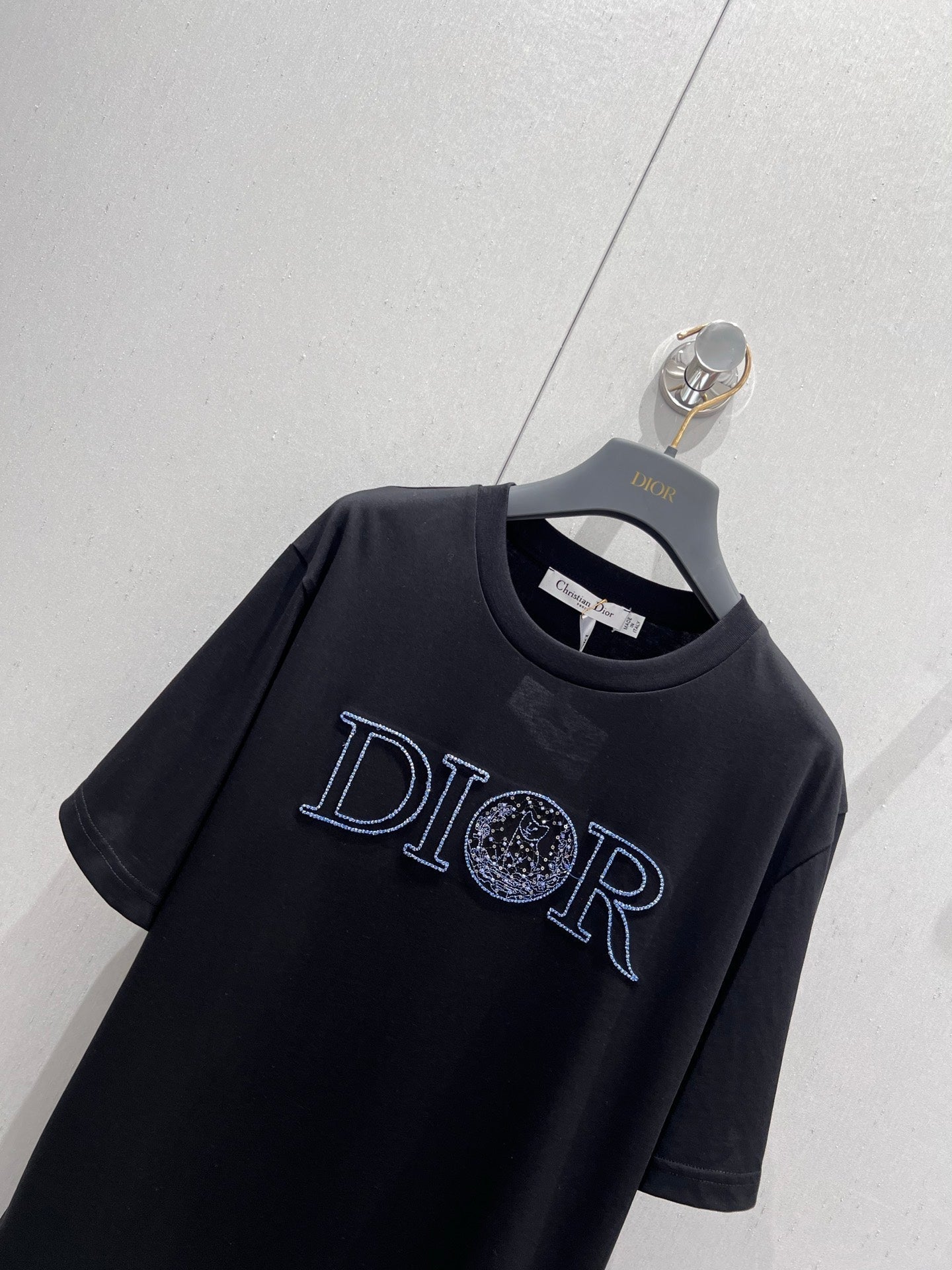 CD 25 Embroidered Grass Cat Short Sleeve Black cotton 217452