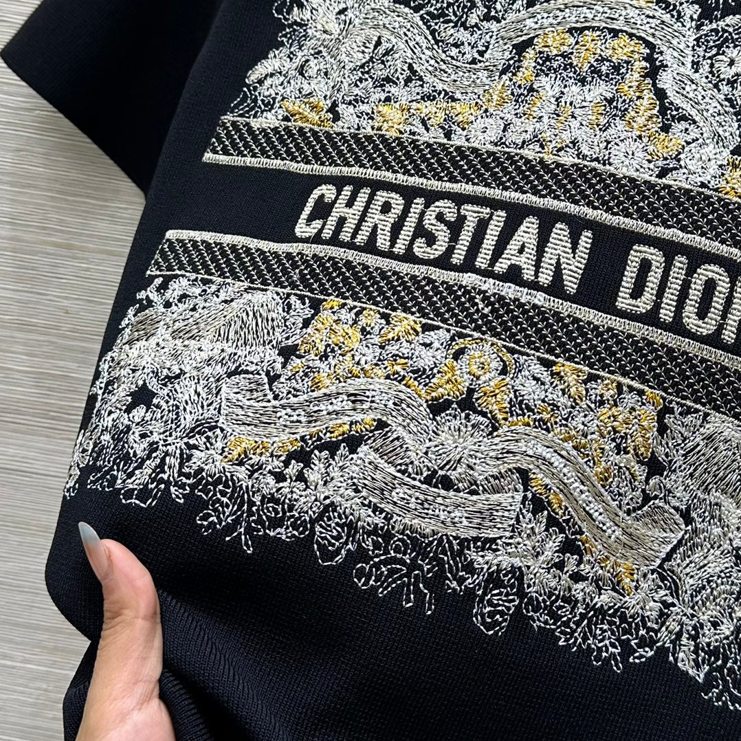CD 25 Star Embroidery Knitted Short-sleeved Top Black Tencel Wool