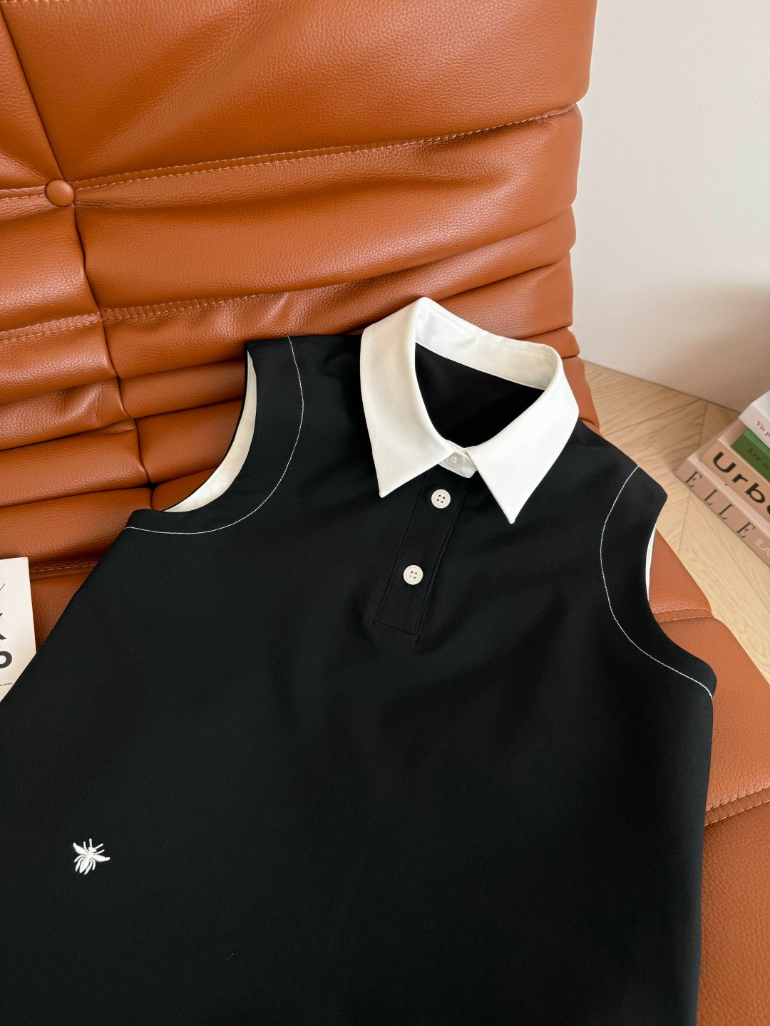 CD 25 Vest Dress Black mix White Cotton