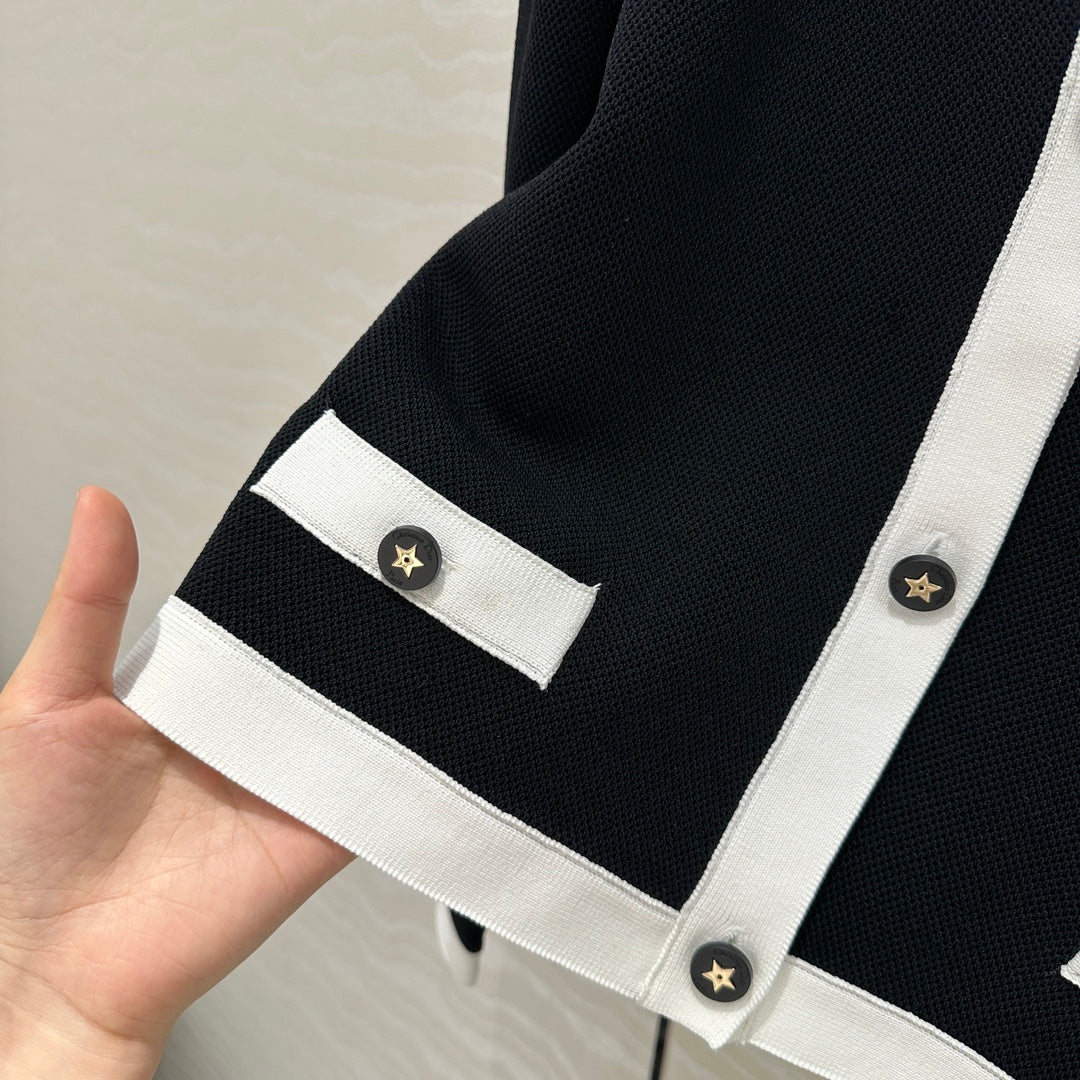 CD Round Neck Cardigan Jacket Black Wool Cotton