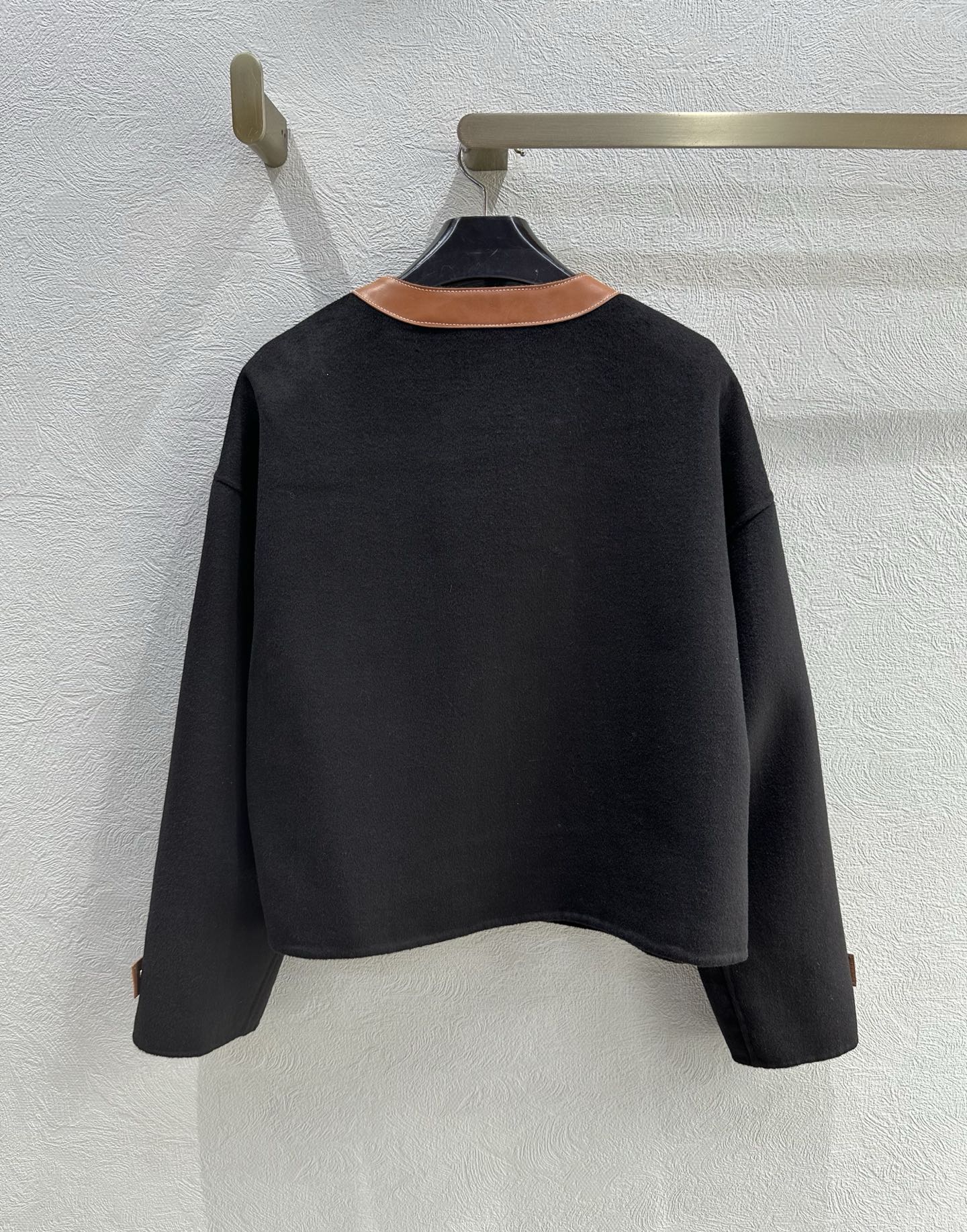 Celine 25 Round Neck Arc de Triomphe Jacket Black Brown Cashmere