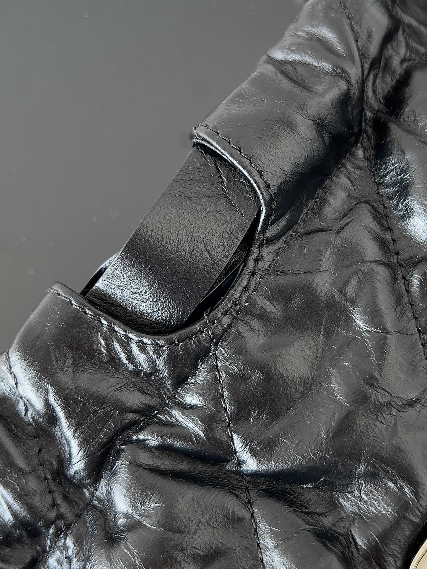 CRUSH LARGE TOTE BAG 46 IN BLACK QUILTED CALFSKIN SILVER HARDWARE