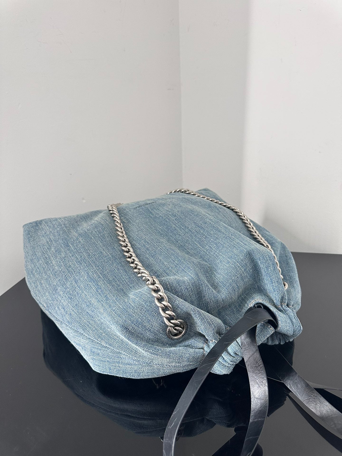 CRUSH LARGE TOTE BAG 46 IN BLUE WASHED DENIM SILVER HARDWARE