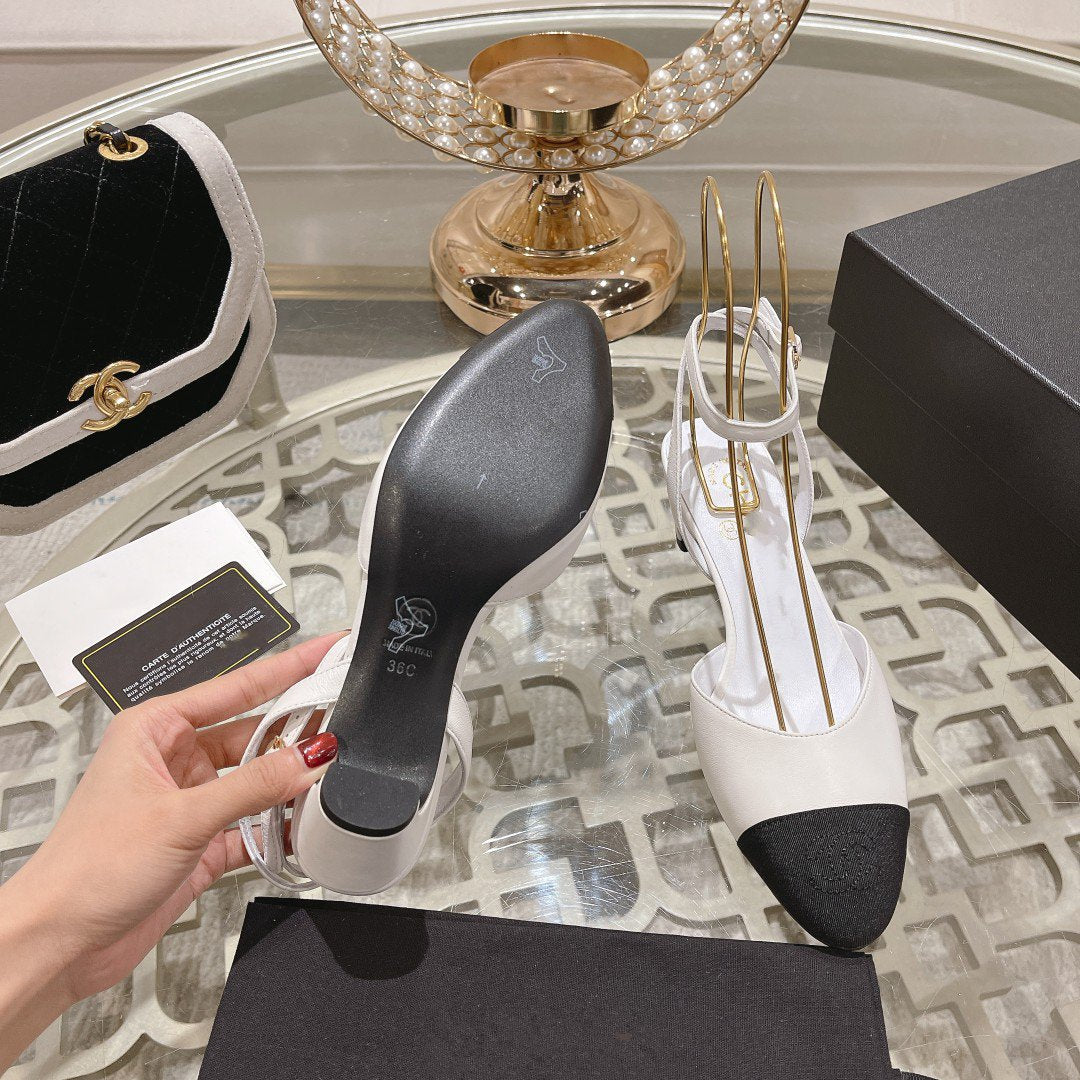 high slingbacks white black lambskin grosgrain