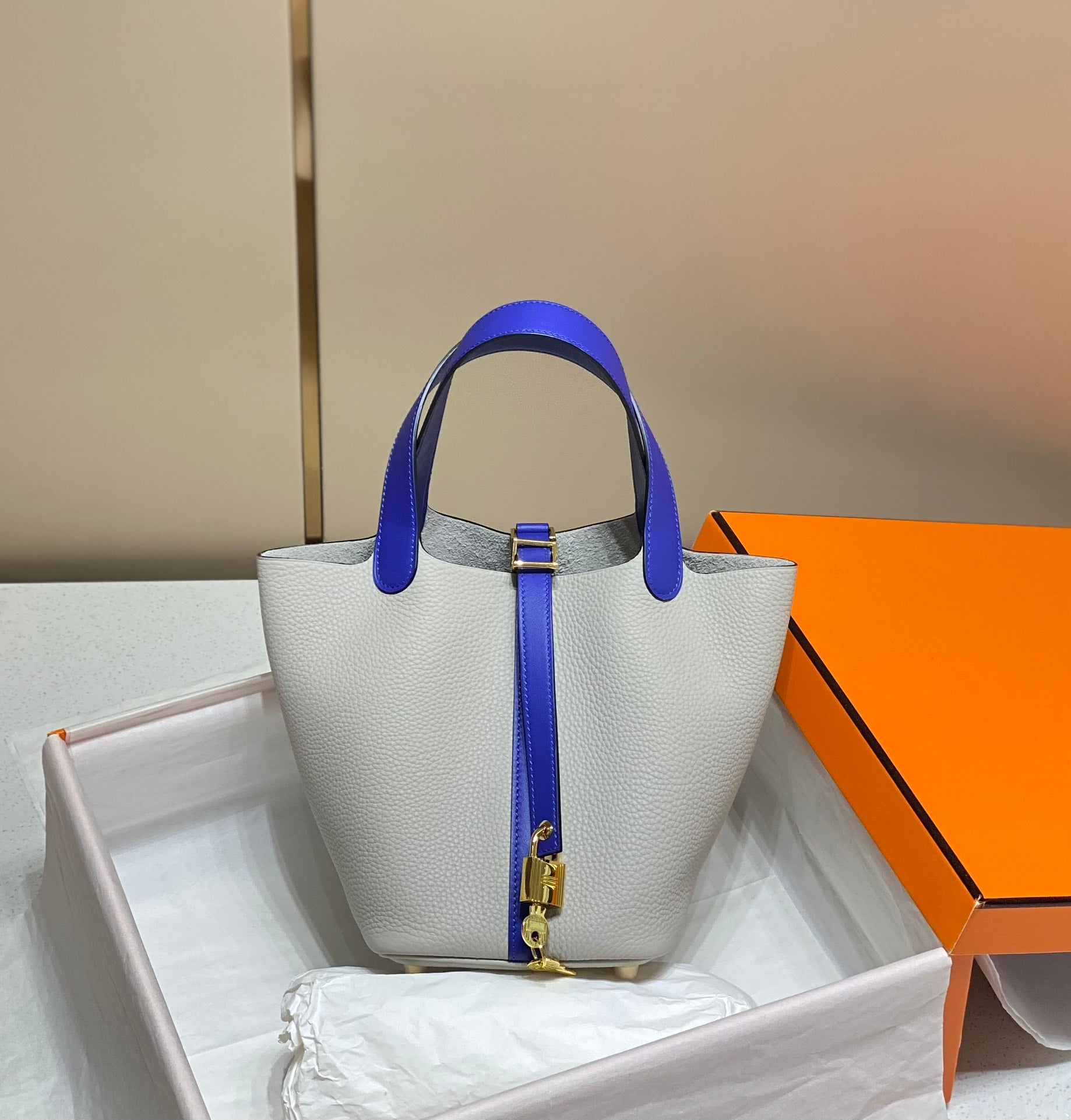 - Material: Togo leather