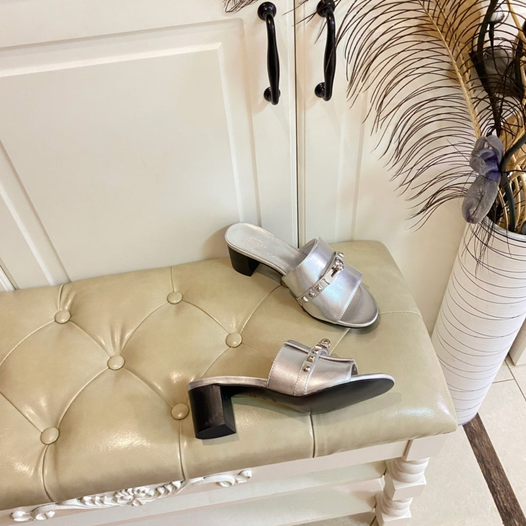 HM Giulia 50 Sandal Silver Metalic Calfskin