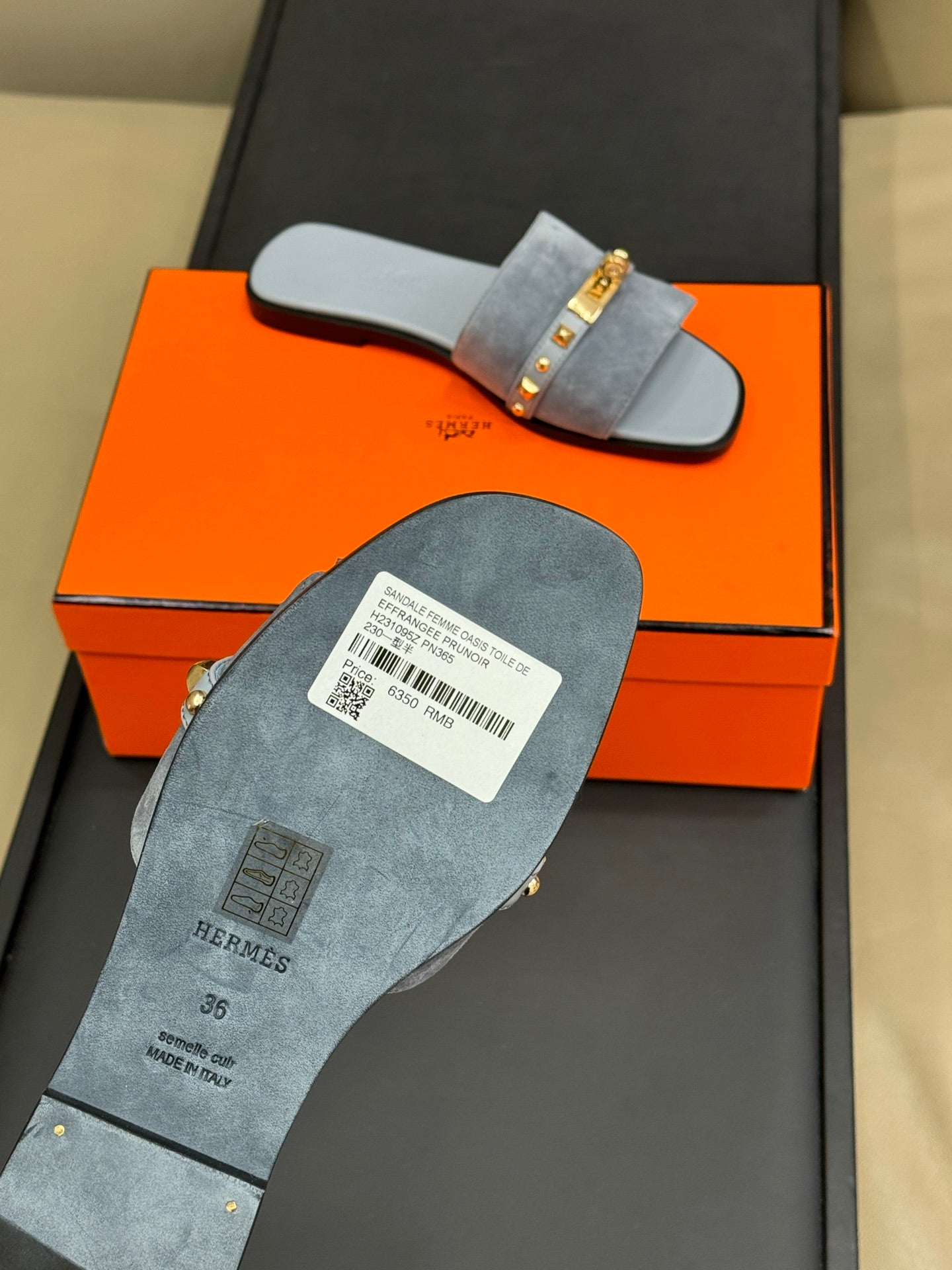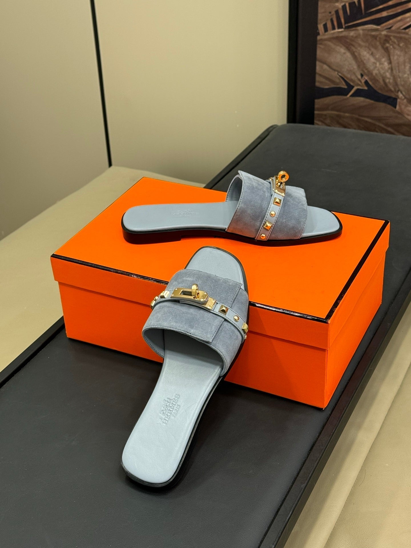 HM Giulia Sandal Bleu Grignon Calfskin with Suede 212731