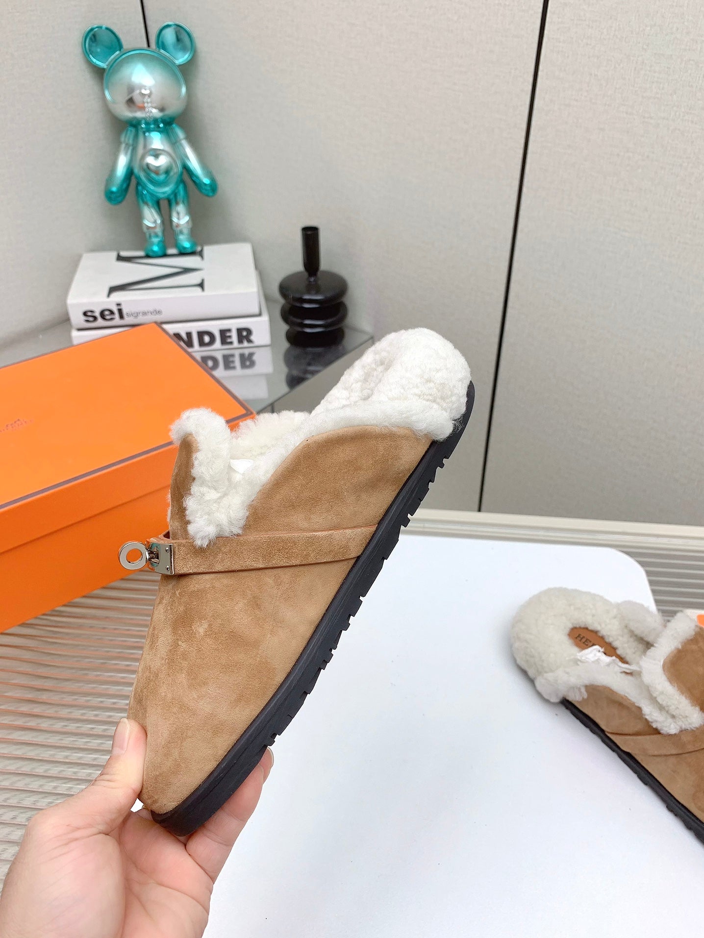 HM Mule 30mm In Light Brown With Fleece And Suede Lining 971394