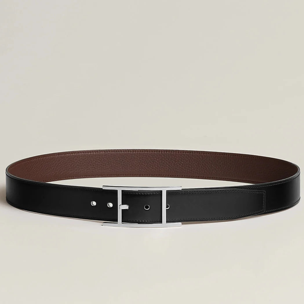 HM Silver Quentin Reversible 32mm Belt Black Chocolate Leather 187794