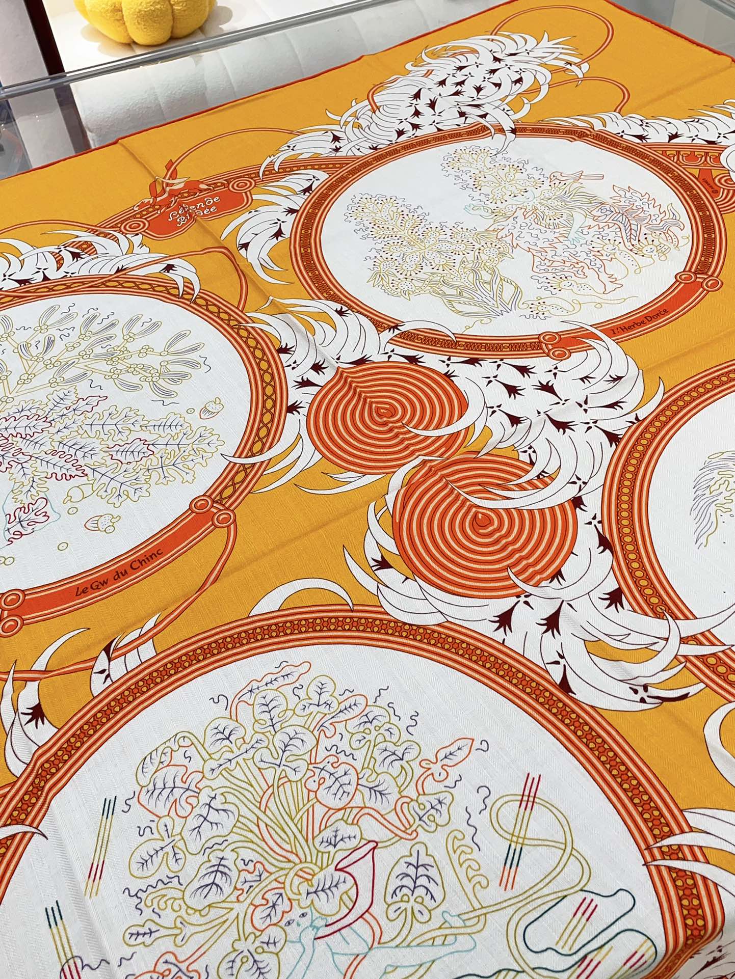 Legende Brodee Scarf 140 CM In Orange Colorful Cashmere And Silk 235415